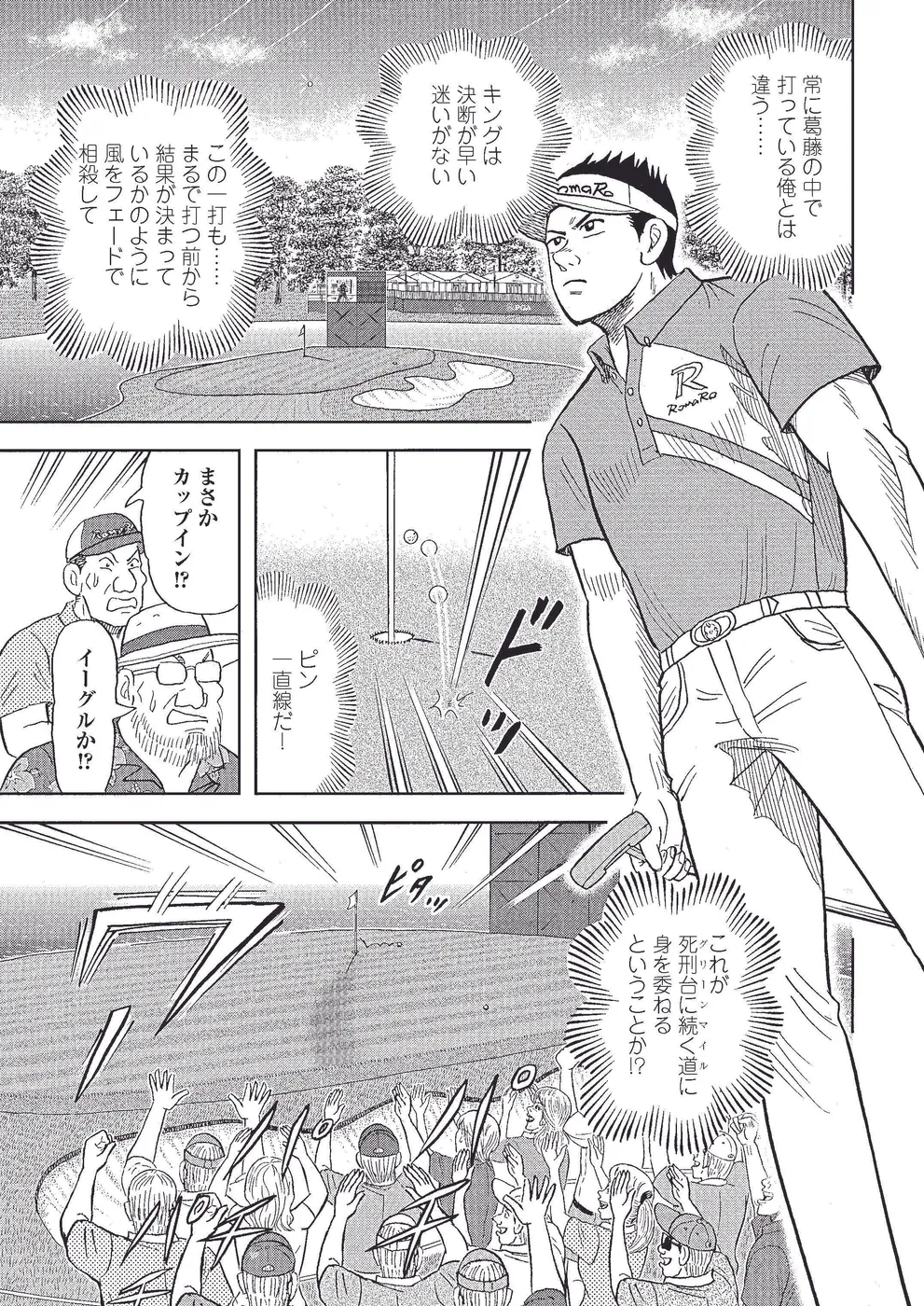 坂本翔は全米プロゴルフ選手権に出場。翔は2日目、尻上がりに調子を上げ、首位のキングと5打差ながら2位タイで予選突破。翔はエマを、ギリギリで予選を通過したエドのキャディにすべくコンビ解消して、ちさ子を新キャディに。3日目は首位のキングと2位タイの梶と翔とでスリーサム。キングに肉薄なるか!?