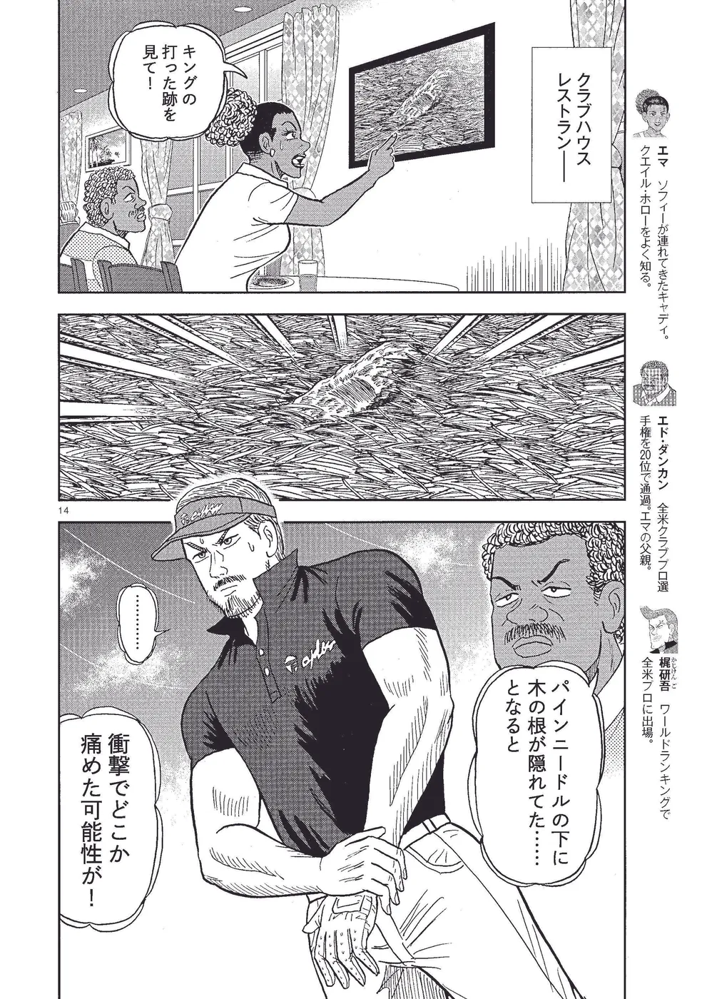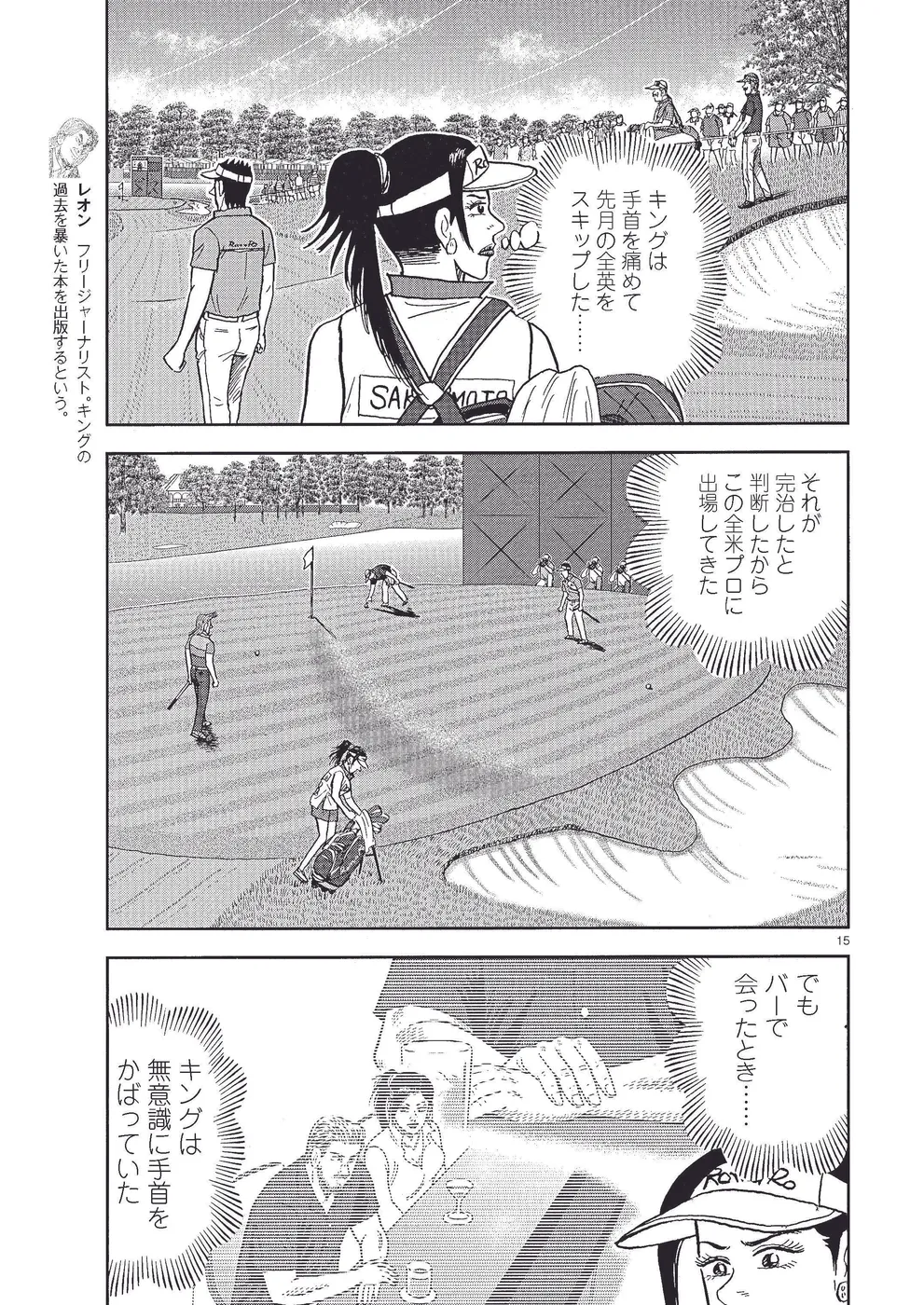 坂本翔は全米プロゴルフ選手権に出場。翔は2日目、尻上がりに調子を上げ、首位のキングと5打差ながら2位タイで予選突破。翔はエマを、ギリギリで予選を通過したエドのキャディにすべくコンビ解消して、ちさ子を新キャディに。3日目は首位のキングと2位タイの梶と翔とでスリーサム。キングに肉薄なるか!?