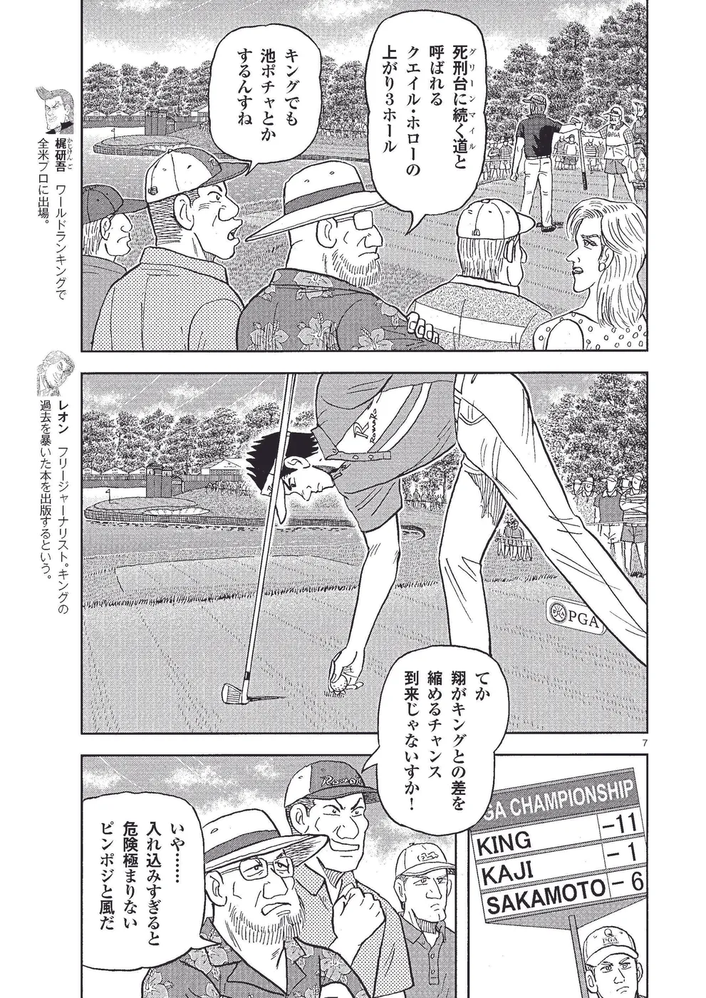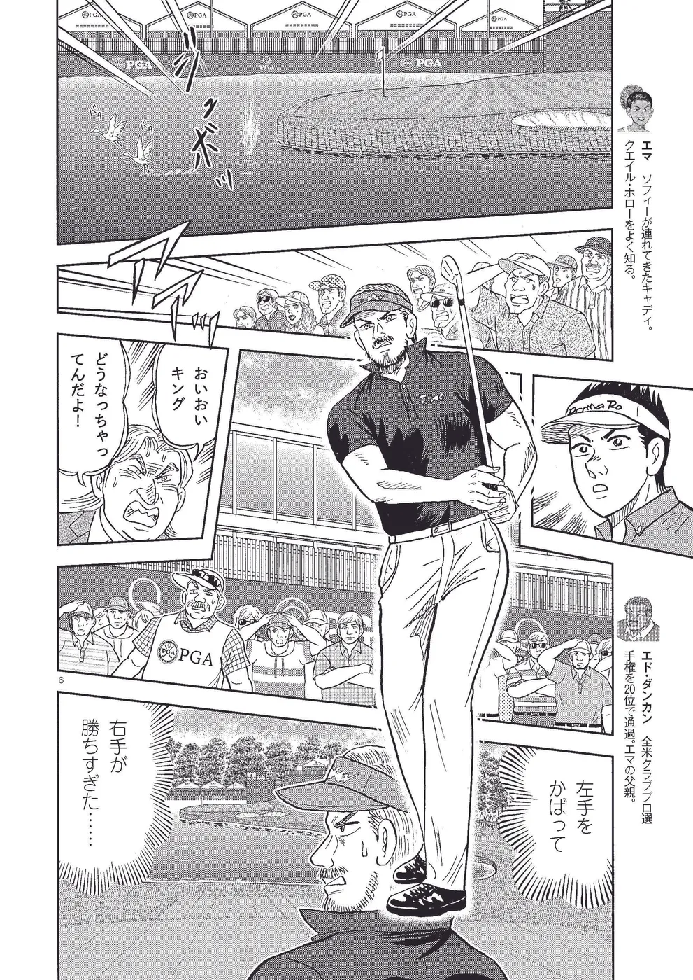 坂本翔は全米プロゴルフ選手権に出場。翔は2日目、尻上がりに調子を上げ、首位のキングと5打差ながら2位タイで予選突破。翔はエマを、ギリギリで予選を通過したエドのキャディにすべくコンビ解消して、ちさ子を新キャディに。3日目は首位のキングと2位タイの梶と翔とでスリーサム。キングに肉薄なるか!?