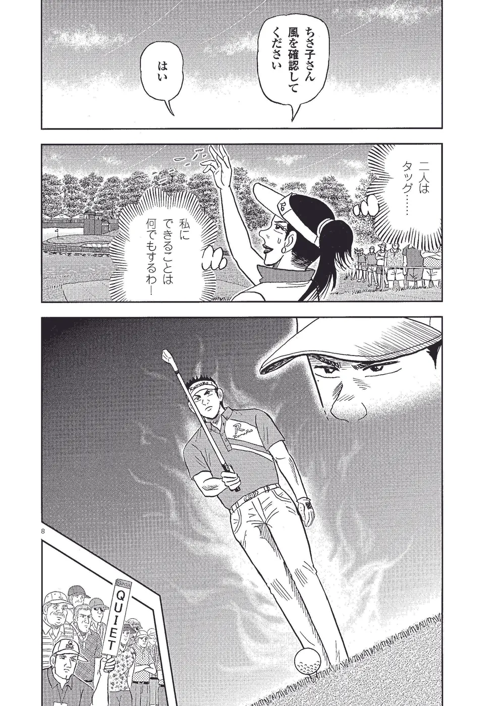 坂本翔は全米プロゴルフ選手権に出場。翔は2日目、尻上がりに調子を上げ、首位のキングと5打差ながら2位タイで予選突破。翔はエマを、ギリギリで予選を通過したエドのキャディにすべくコンビ解消して、ちさ子を新キャディに。3日目は首位のキングと2位タイの梶と翔とでスリーサム。キングに肉薄なるか!?