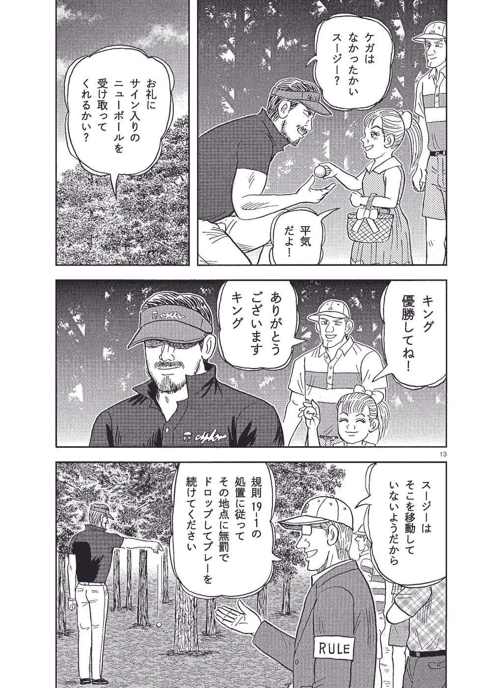 坂本翔は全米プロゴルフ選手権に出場。翔は2日目、尻上がりに調子を上げ、首位のキングと5打差ながら2位タイで予選突破。決勝ラウンド、翔はちさ子を新キャディにし、キングを追いかける。難しい17番パー3で翔はバーディ、キングはまさかのボギーで3打差まで迫るが……