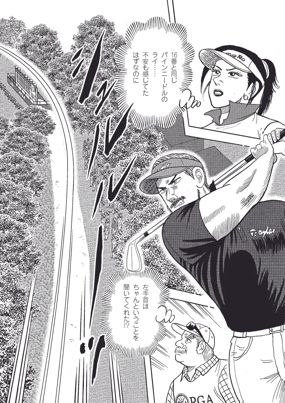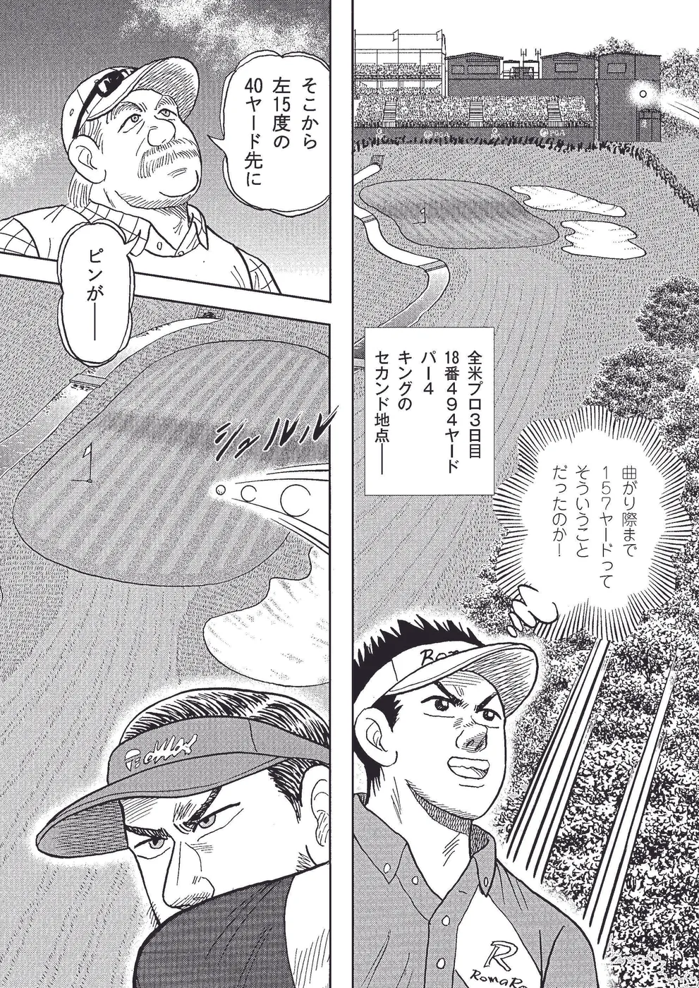 坂本翔は全米プロゴルフ選手権に出場。翔は2日目、尻上がりに調子を上げ、首位のキングと5打差ながら2位タイで予選突破。決勝ラウンド、翔はちさ子を新キャディにし、キングを追いかける。3打差で迎えた18番、翔は左、キングは右にティショットを曲げてしまうが……