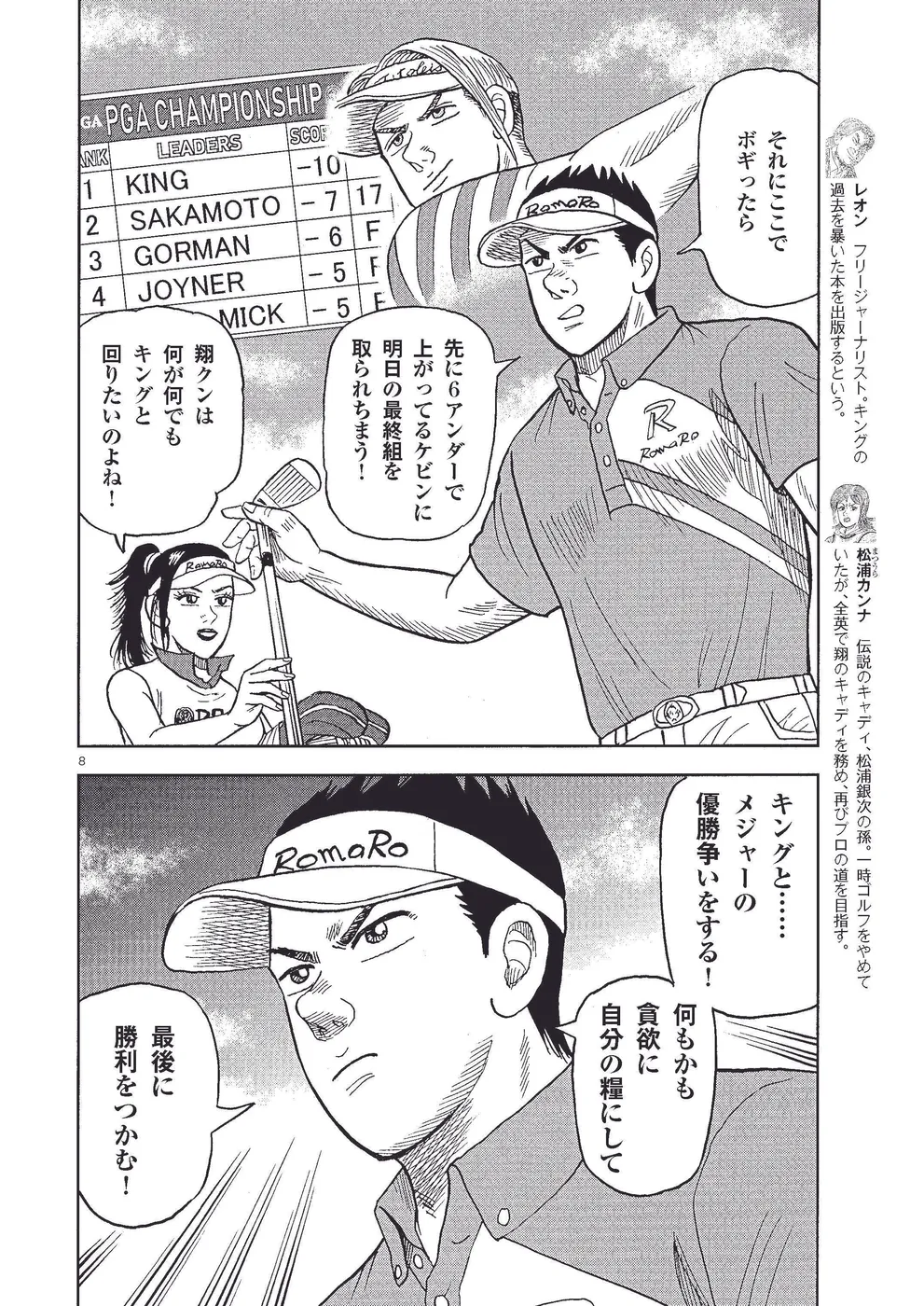 坂本翔は全米プロゴルフ選手権に出場。翔は2日目、尻上がりに調子を上げ、首位のキングと5打差ながら2位タイで予選突破。決勝ラウンド、翔はちさ子を新キャディにし、キングを追いかける。3打差で迎えた18番、翔は左、キングは右にティショットを曲げてしまうが……