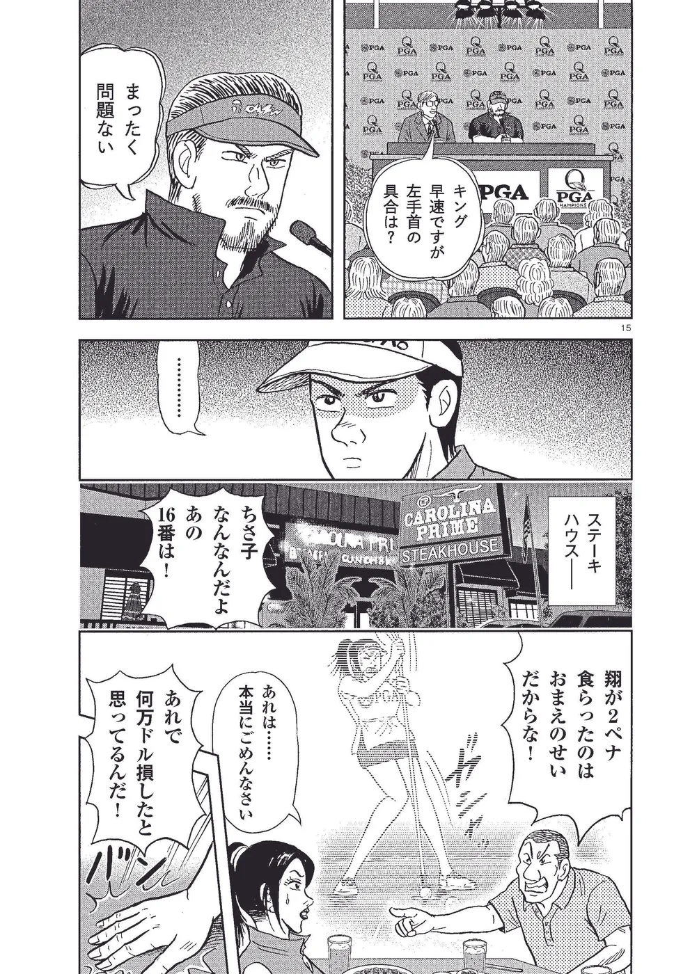 坂本翔は全米プロゴルフ選手権に出場。翔は2日目、尻上がりに調子を上げ、首位のキングと5打差ながら2位タイで予選突破。3日目、キングと梶とのスリーサムでラウンドすることに。キングを3打差で追う18番ホール、翔は「死刑台に続く道」に自分なりの身の委ね方を試すが!?