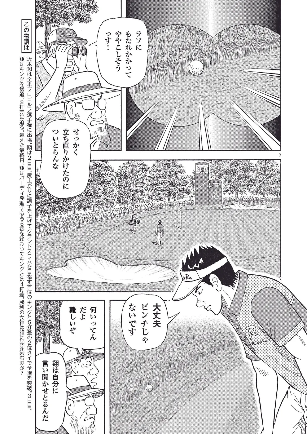 坂本翔は全米プロゴルフ選手権に出場。翔は2日目、尻上がりに調子を上げてグランドスラムを目指す首位のキングと5打差の2位タイで予選を突破。3日目、翔はキングを猛追、2打差に迫る。迎えた最終日、翔はバーディ発進するも5番を終わってキングとは4打差。勝利の女神は誰にほほ笑むのか?