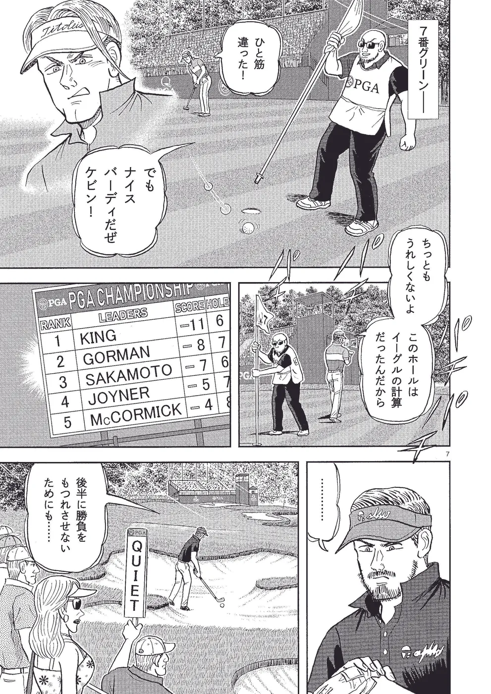 坂本翔は全米プロゴルフ選手権に出場。翔は3日目、グランドスラムを目指す首位のキングを猛追、2打差に迫る。迎えた最終日、翔は序盤で空回りしてキングと4打差となる。相性のいい7番で反撃のきっかけをつかめるか?
