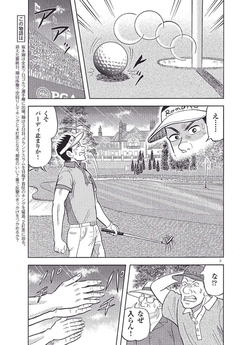 坂本翔は全米プロゴルフ選手権に出場。翔は3日目、グランドスラムを目指す首位のキングを猛追、2打差に迫る。迎えた最終日、翔は序盤で空回りしてキングと4打差となる。相性のいい7番で反撃のきっかけをつかめるか?