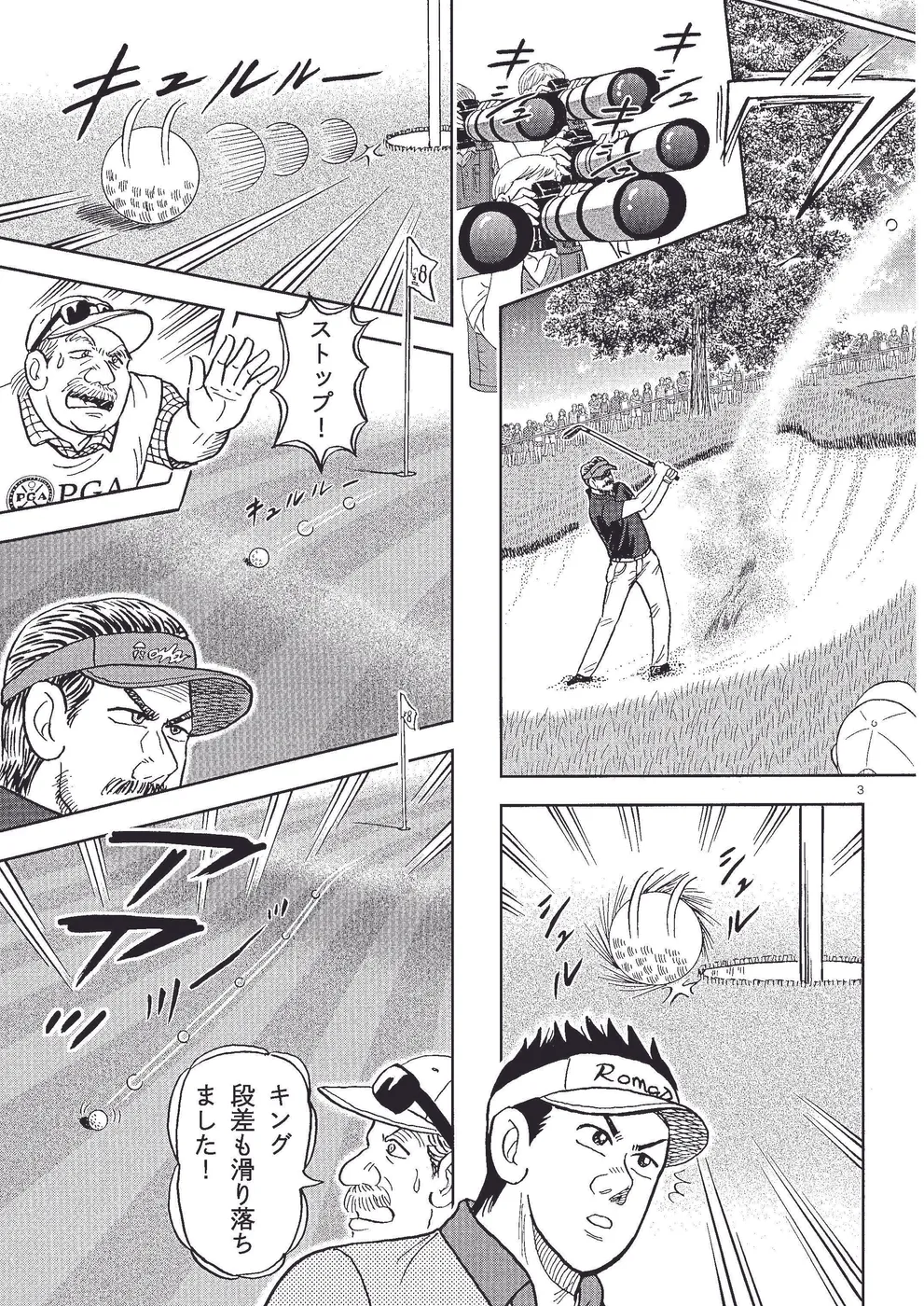 坂本翔は全米プロゴルフ選手権に出場。翔はグランドスラムを目指す首位のキングを追い、2打差で最終日を迎える。序盤で翔は空回りするも相性のよい7番でイーグル逃しのバーディ。キングは取りこぼして3打差となる。勢いに乗る翔は8番パー4で、ほぼ1オン。キングはバンカーと明暗が分かれるが……