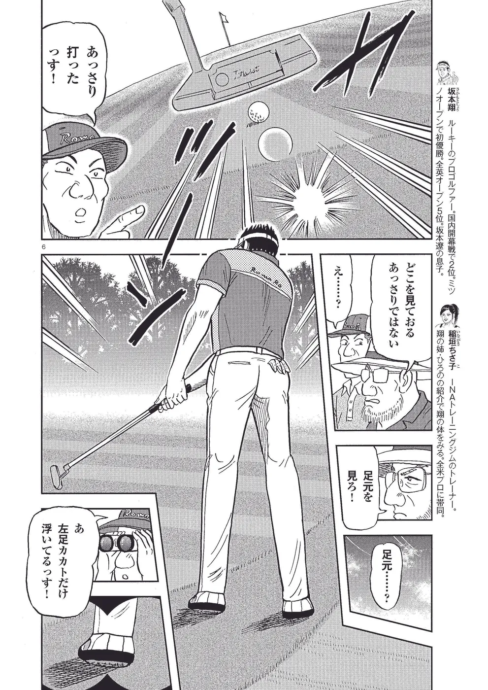坂本翔は全米プロゴルフ選手権に出場。翔はグランドスラムを目指す首位のキングを追い、2打差で最終日を迎える。序盤で翔は空回りするも相性のよい7番でイーグル逃しのバーディ。キングは取りこぼして3打差となる。勢いに乗る翔は8番パー4で、ほぼ1オン。キングはバンカーと明暗が分かれるが……