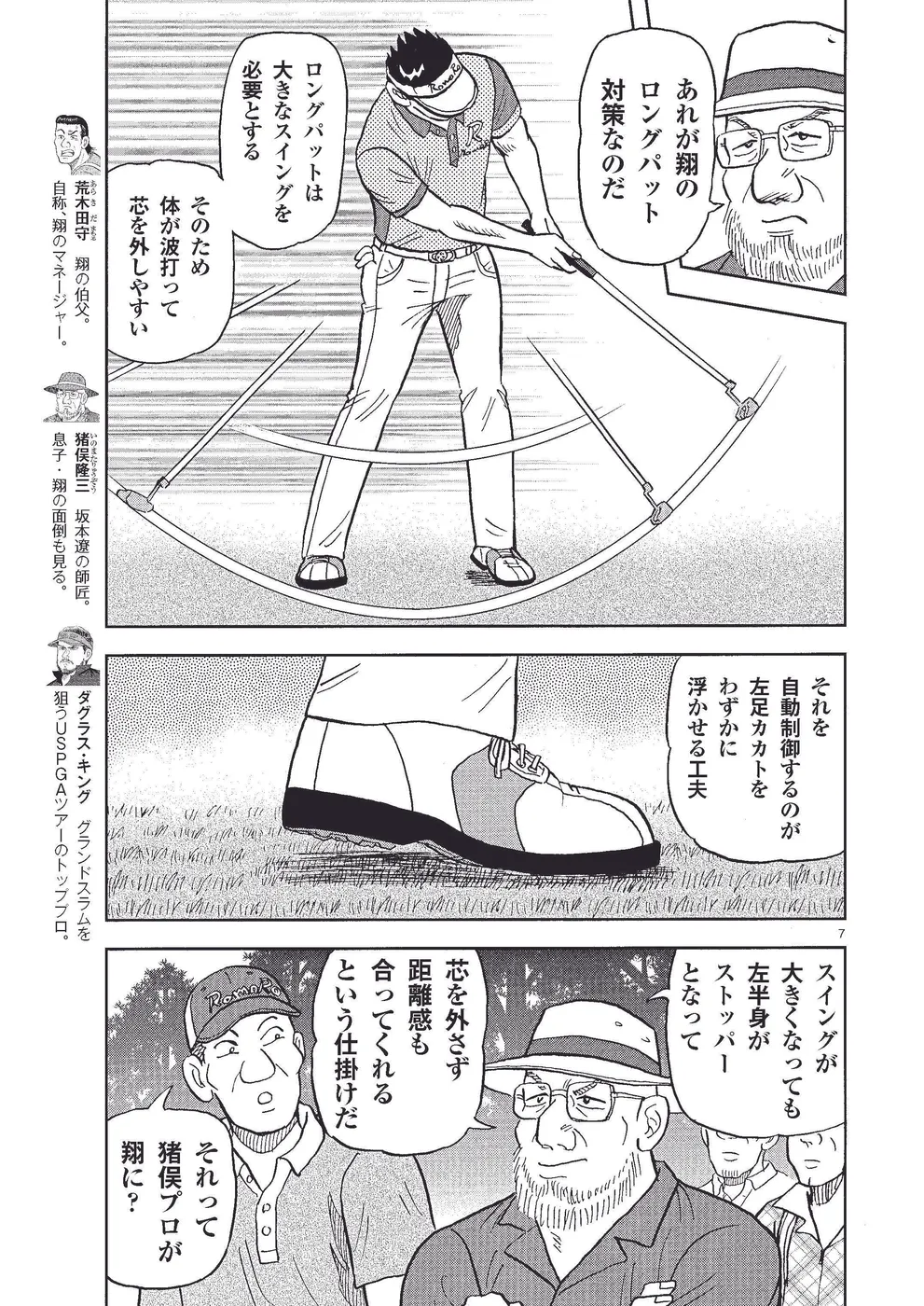 坂本翔は全米プロゴルフ選手権に出場。翔はグランドスラムを目指す首位のキングを追い、2打差で最終日を迎える。序盤で翔は空回りするも相性のよい7番でイーグル逃しのバーディ。キングは取りこぼして3打差となる。勢いに乗る翔は8番パー4で、ほぼ1オン。キングはバンカーと明暗が分かれるが……