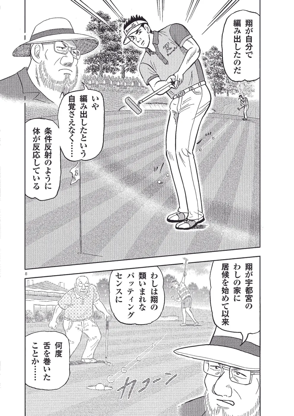 坂本翔は全米プロゴルフ選手権に出場。翔はグランドスラムを目指す首位のキングを追い、2打差で最終日を迎える。序盤で翔は空回りするも相性のよい7番でイーグル逃しのバーディ。キングは取りこぼして3打差となる。勢いに乗る翔は8番パー4で、ほぼ1オン。キングはバンカーと明暗が分かれるが……