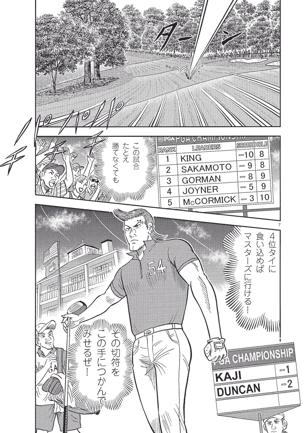 坂本翔は全米プロゴルフ選手権に出場。翔はグランドスラムを目指す首位のキングを追い、2打差で最終日を迎える。序盤で翔は空回りするも7番でイーグル逃しのバーディ、8番も連続バーディでボギーを叩いたキングに1打差と詰め寄った。一方、少しでも上の順位を目指すエドは正念場を迎えていた……