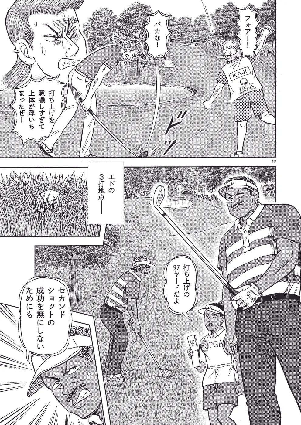 坂本翔は全米プロゴルフ選手権に出場。翔はグランドスラムを目指す首位のキングを追い、2打差で最終日を迎える。序盤で翔は空回りするも7番でイーグル逃しのバーディ、8番も連続バーディでボギーを叩いたキングに1打差と詰め寄った。一方、少しでも上の順位を目指すエドは正念場を迎えていた……