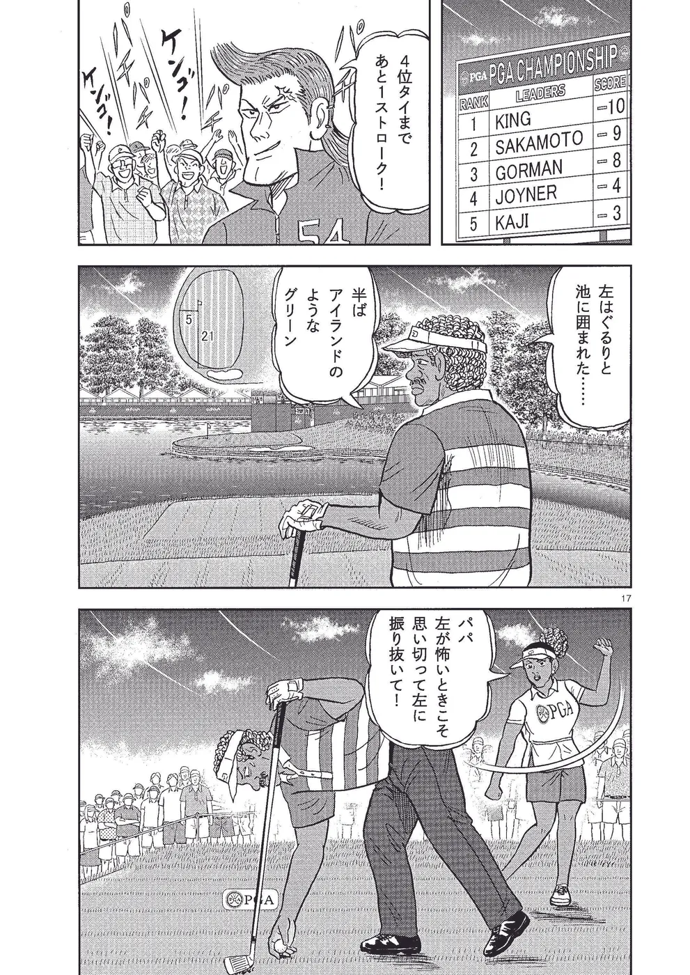 坂本翔は全米プロゴルフ選手権に出場。翔はグランドスラムを目指す首位のキングを追い、2打差で最終日を迎える。序盤で翔は空回りするも7番、8番の連続バーディでキングに1打差と詰め寄る。一方、少しでも上の順位を目指すエドは 15番、ギャンブルに成功してパーオンを狙える位置にボールを運ぶが……