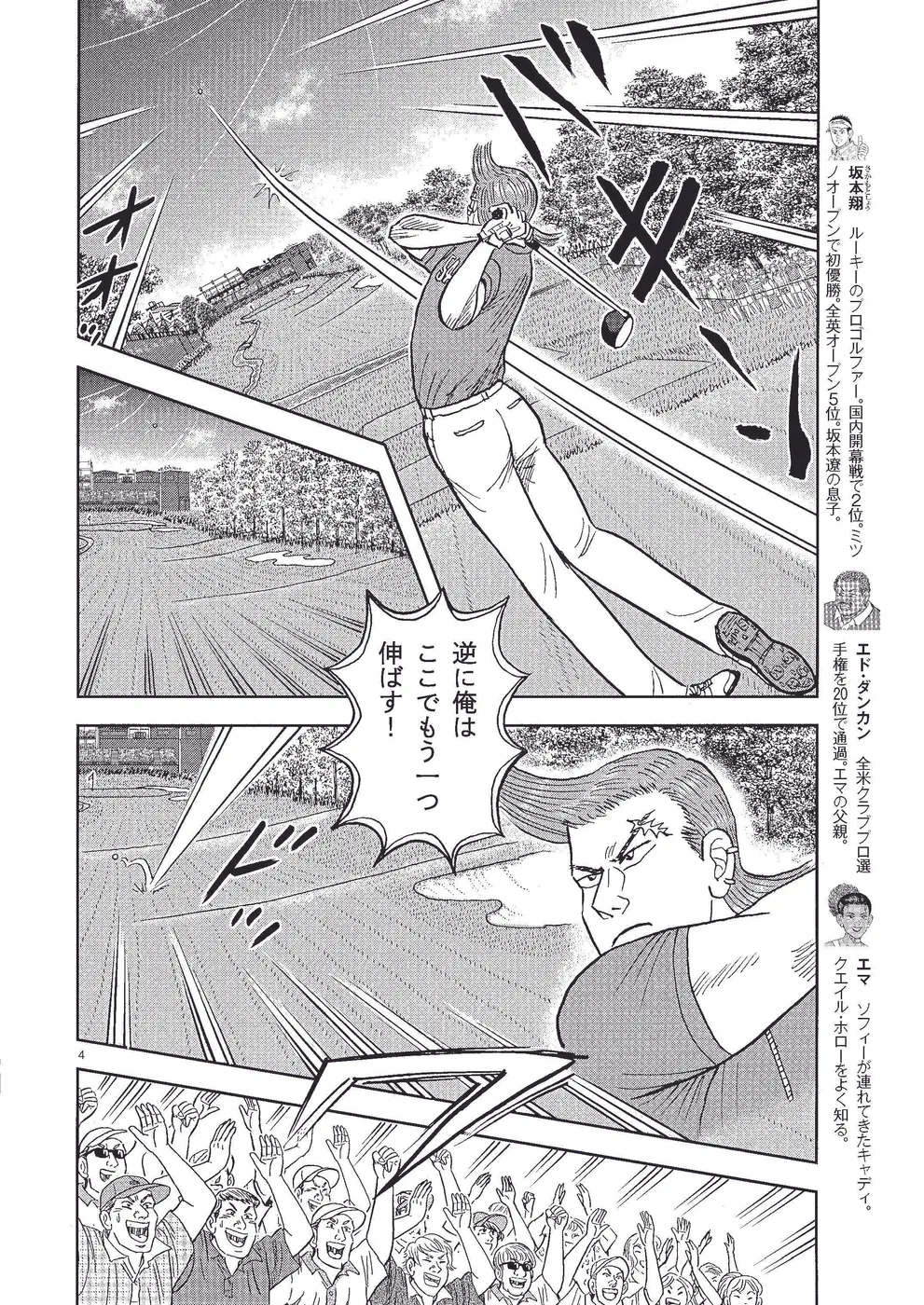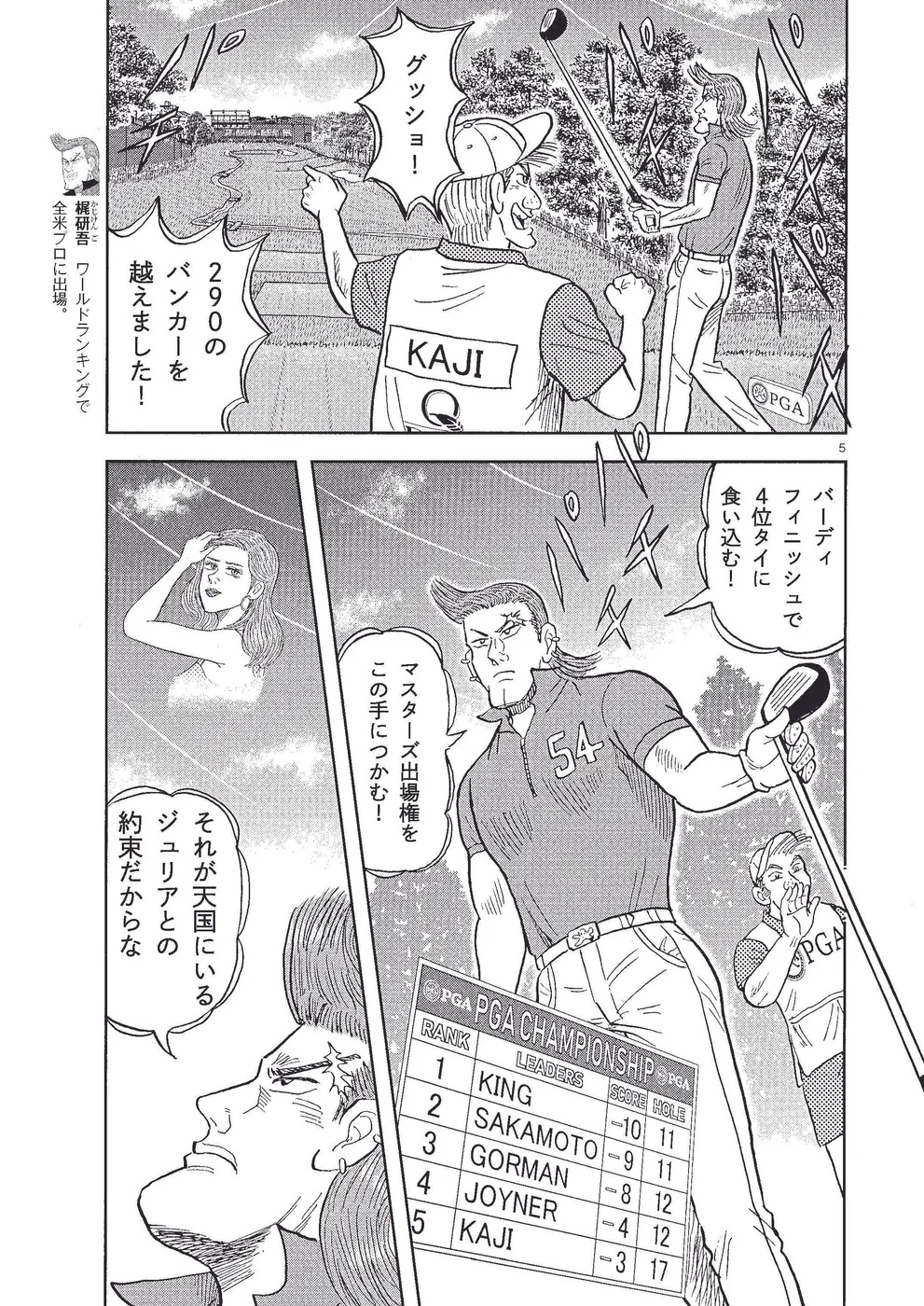 坂本翔は全米プロゴルフ選手権に出場。翔はグランドスラムを目指す首位のキングを追い、2打差で最終日を迎える。序盤で翔は空回りするも7番、8番の連続バーディでキングに1打差と迫る。一方、少しでも上の順位を目指すエドは15番でイーグルを奪うも、上がり3ホールのグリーンマイルの罠にはまり……