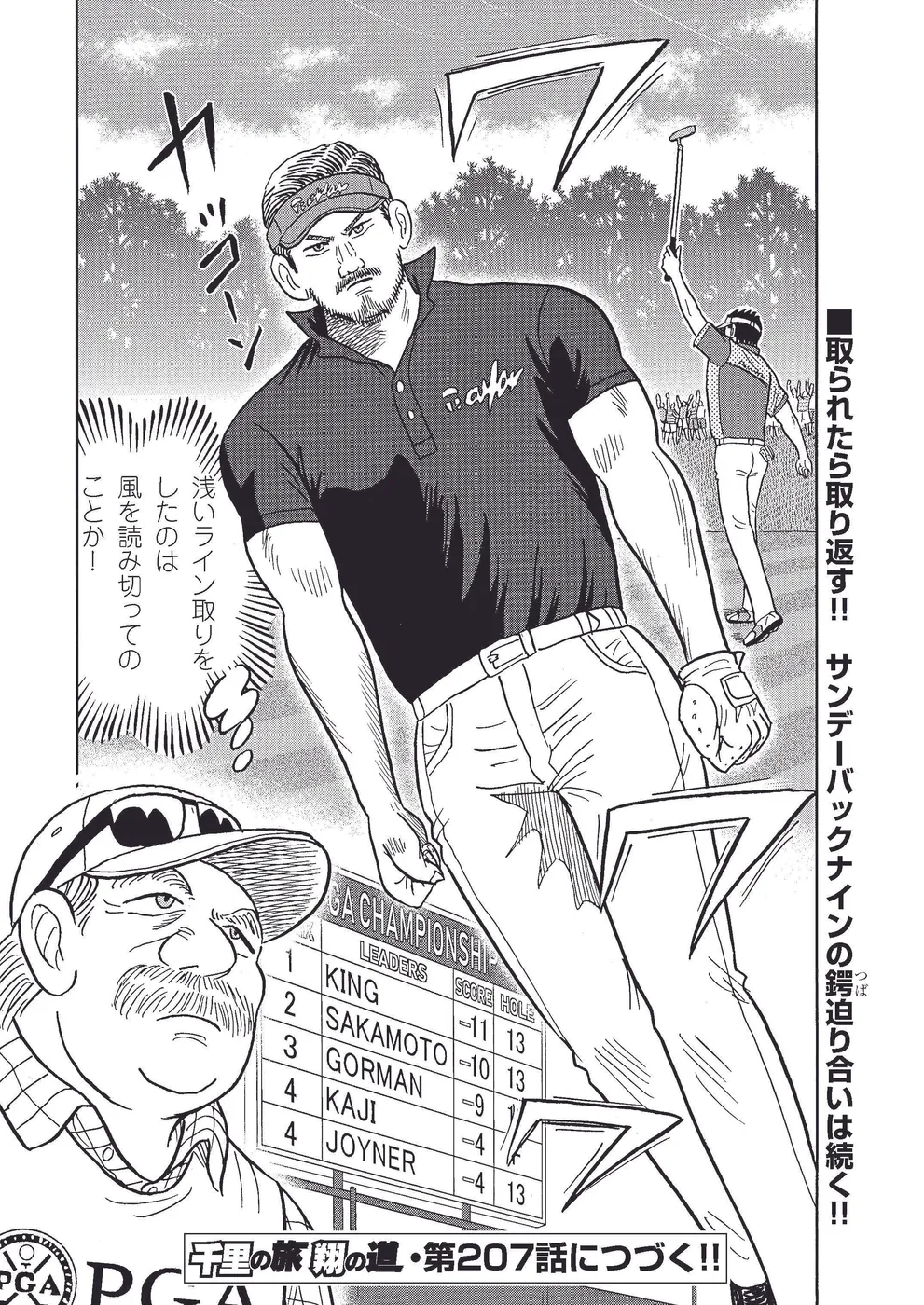 坂本翔は全米プロゴルフ選手権に出場。翔はグランドスラムを目指す首位のキングを追い、2打差で最終日を迎える。序盤で翔は空回りするも7番、8番の連続バーディで キングに1打差と迫る。しかし、サンデーバックナインに入ってからはパーセーブが続き、キングとの死闘は12番に入った。前の組ではケビンがバーディでトップを追走する。