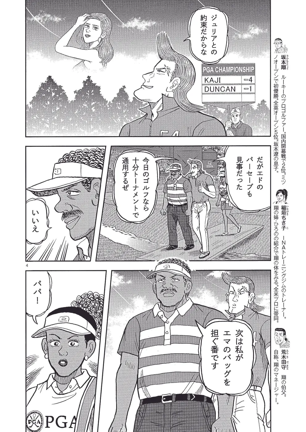 坂本翔は全米プロゴルフ選手権に出場。翔はグランドスラムを目指す首位のキングを追い、2打差で最終日を迎える。序盤で翔は空回りするも7番、8番の連続バーディで キングに1打差と迫る。しかし、サンデーバックナインに入ってからはパーセーブが続き、キングとの死闘は12番に入った。前の組ではケビンがバーディでトップを追走する。