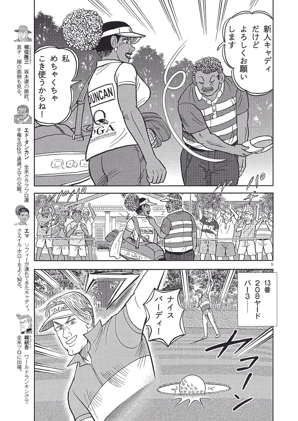 坂本翔は全米プロゴルフ選手権に出場。翔はグランドスラムを目指す首位のキングを追い、2打差で最終日を迎える。序盤で翔は空回りするも7番、8番の連続バーディで キングに1打差と迫る。しかし、サンデーバックナインに入ってからはパーセーブが続き、キングとの死闘は12番に入った。前の組ではケビンがバーディでトップを追走する。