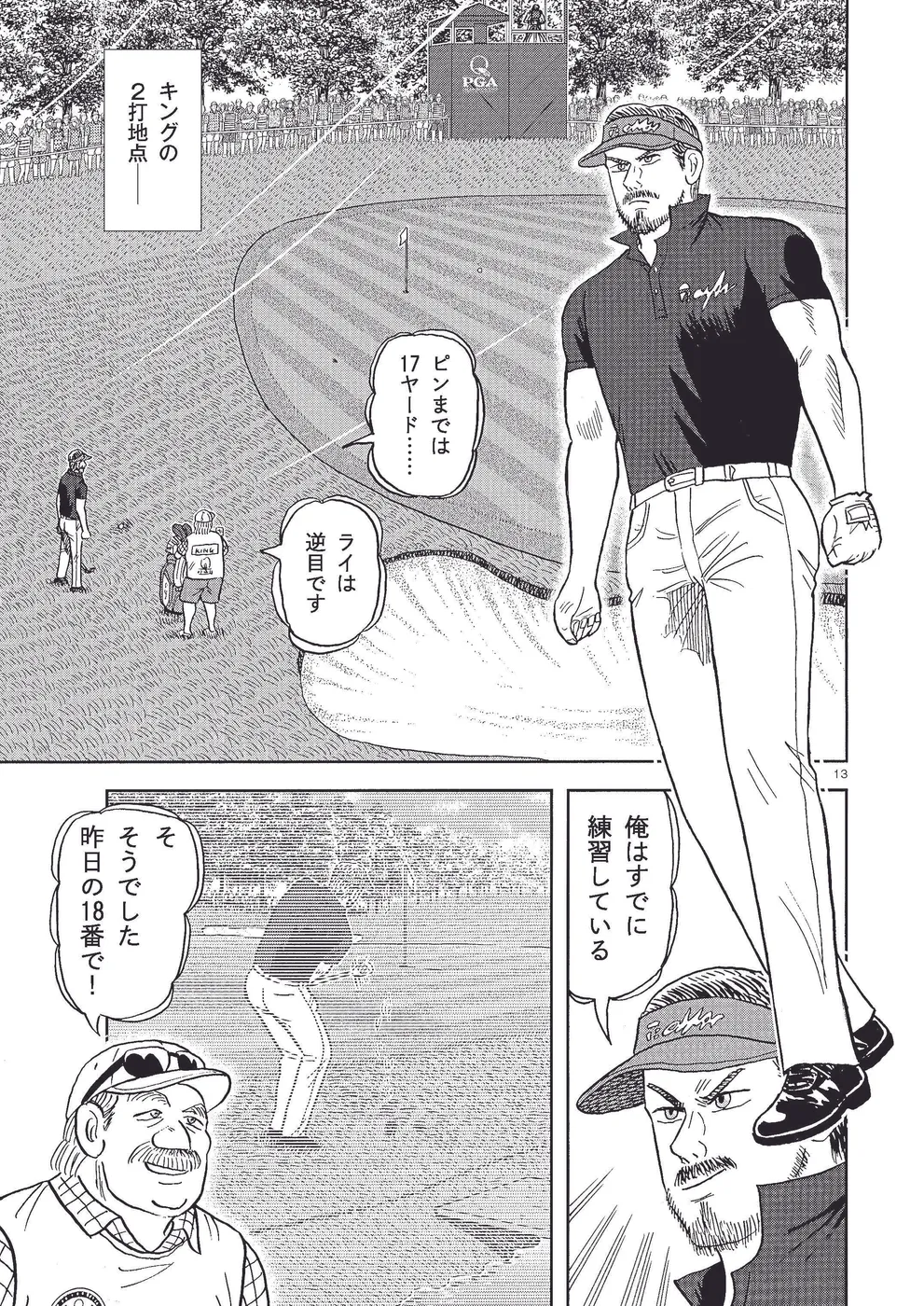 坂本翔は全米プロゴルフ選手権に出場。翔はグランドスラムを目指す首位のキングを追い、2打差で最終日を迎える。序盤で翔は空回りするも7番、8番の連続バーディで キングに1打差と迫る。しかし、サンデーバックナインに入ってからはパーセーブが続き、キングとの死闘は12番に入った。前の組ではケビンがバーディでトップを追走する。