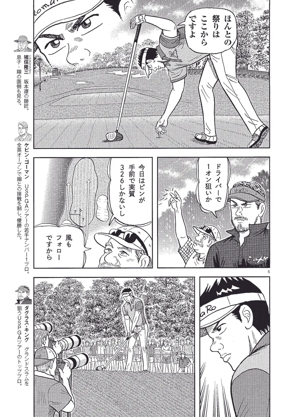 坂本翔は全米プロゴルフ選手権に出場。翔はグランドスラムを目指す首位のキングを追い、2打差で最終日を迎えた。クラブプロのエドはグリーンマイルの罠にハマるも、最終18番、渾身のセカンドショットで有終の美を飾る。優勝争いはキングと翔、前の組で回る全英オープン優勝のケビン・ゴーマンに絞られたが……