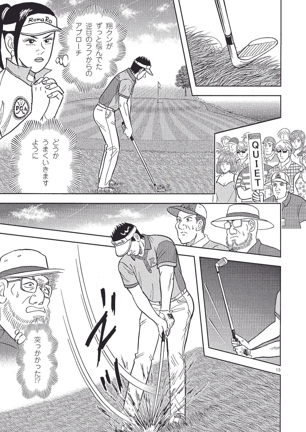 坂本翔は全米プロゴルフ選手権に出場。翔はグランドスラムを目指す首位のキングを追い、2打差で最終日を迎えた。クラブプロのエドはグリーンマイルの罠にハマるも、最終18番、渾身のセカンドショットで有終の美を飾る。優勝争いはキングと翔、前の組で回る全英オープン優勝のケビン・ゴーマンに絞られたが……