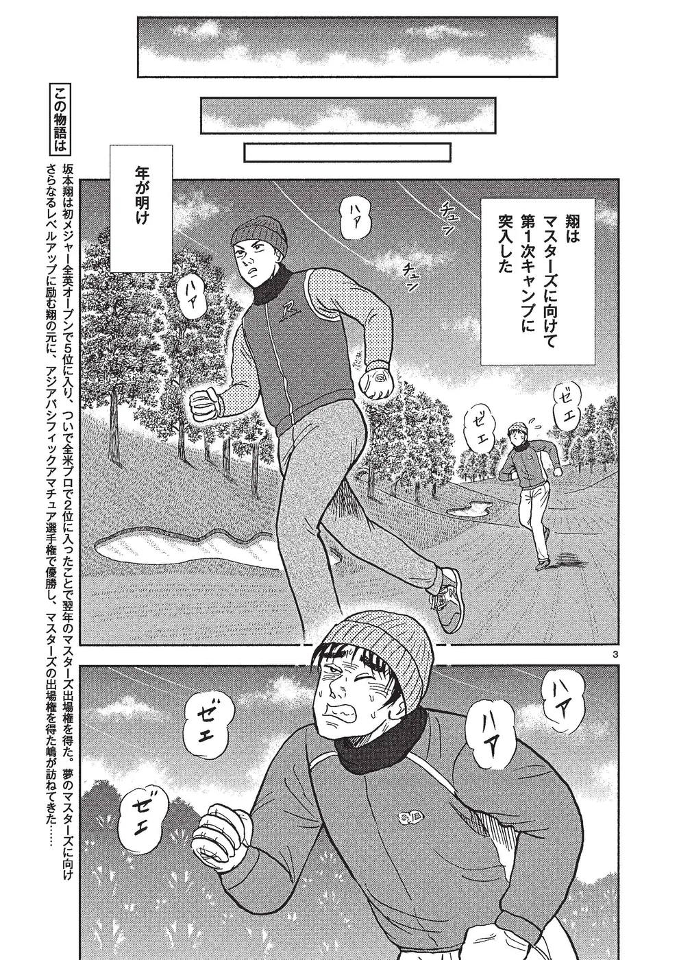 坂本翔は初メジャー全英オープンで5位に入り、ついで全米プロで2位に入ったことで翌年のマスターズ出場権を得た。夢のマスターズ出場に向けさらなるレベルアップに励む翔の元に、アジアパシフィックアマチュア選手権で優勝し、マスターズの出場権を得た嶋が訪ねてきた。