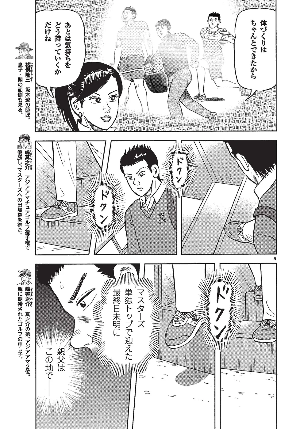 坂本翔は初メジャー全英オープンで5位に入り、ついで全米プロで2位に入ったことで翌年のマスターズ出場権を得た。夢のマスターズ出場に向けさらなるレベルアップに励む翔の元に、アジアパシフィックアマチュア選手権で優勝し、マスターズの出場権を得た嶋真之介が弟子入りし行動を共にするが……