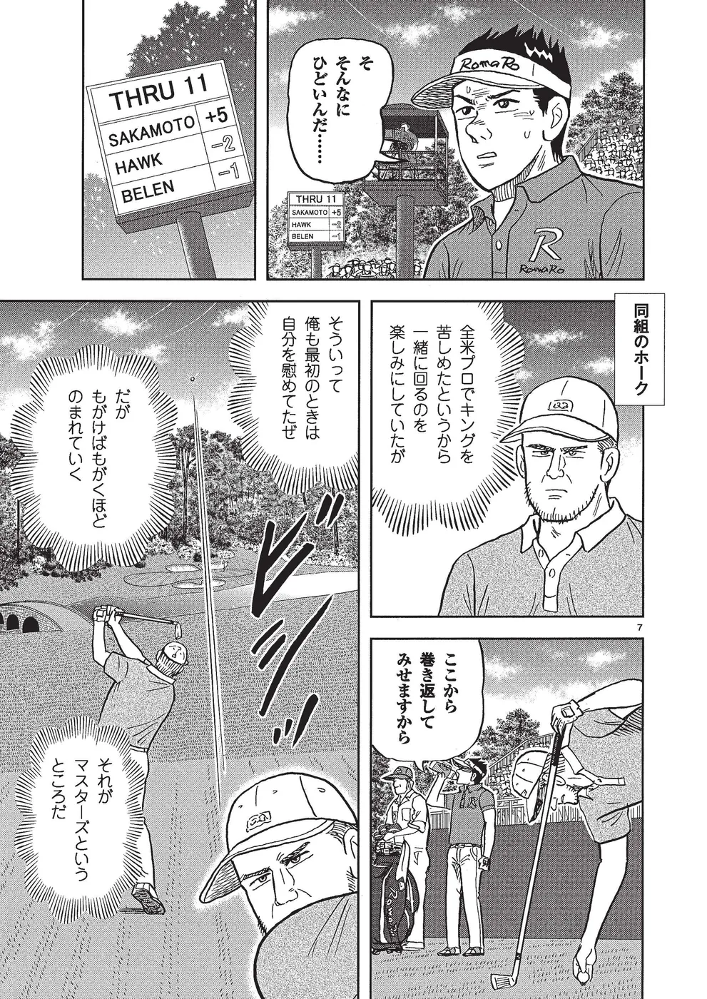 坂本翔は初メジャー全英オープンで5位に入り、ついで全米プロで2位に入ったことで翌年のマスターズ出場権を得た。翔はオフにトレーニングを重ね、春先にアメリカを転戦して好調を維持。そして15年前、優勝を目前にした父が帰らぬ人となったオーガスタの地に戻ってきた。いよいよ翔のマスターズが始まる!