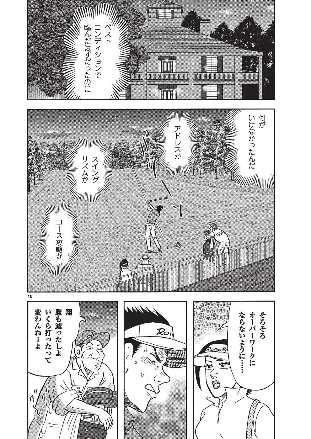 坂本翔は初メジャー全英オープンで5位に入り、ついで全米プロで2位に入ったことで翌年のマスターズ出場権を得た。翔はオフにトレーニングを重ね、春先にアメリカを転戦して好調を維持。そして15年前、優勝を目前にした父が帰らぬ人となったオーガスタの地に戻ってきた。いよいよ翔のマスターズが始まる!