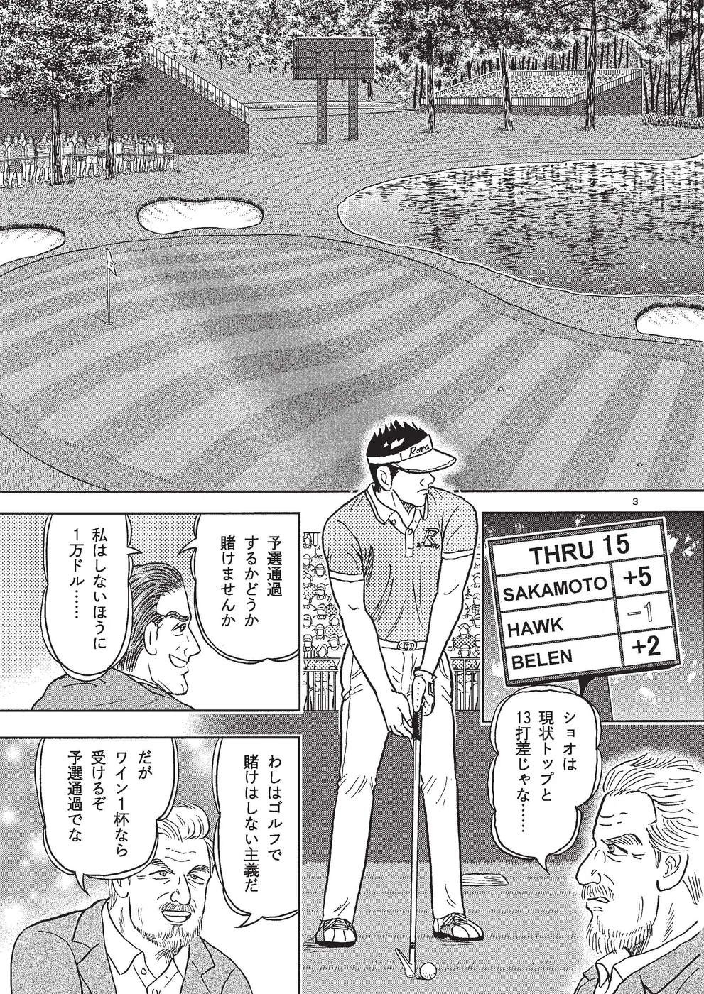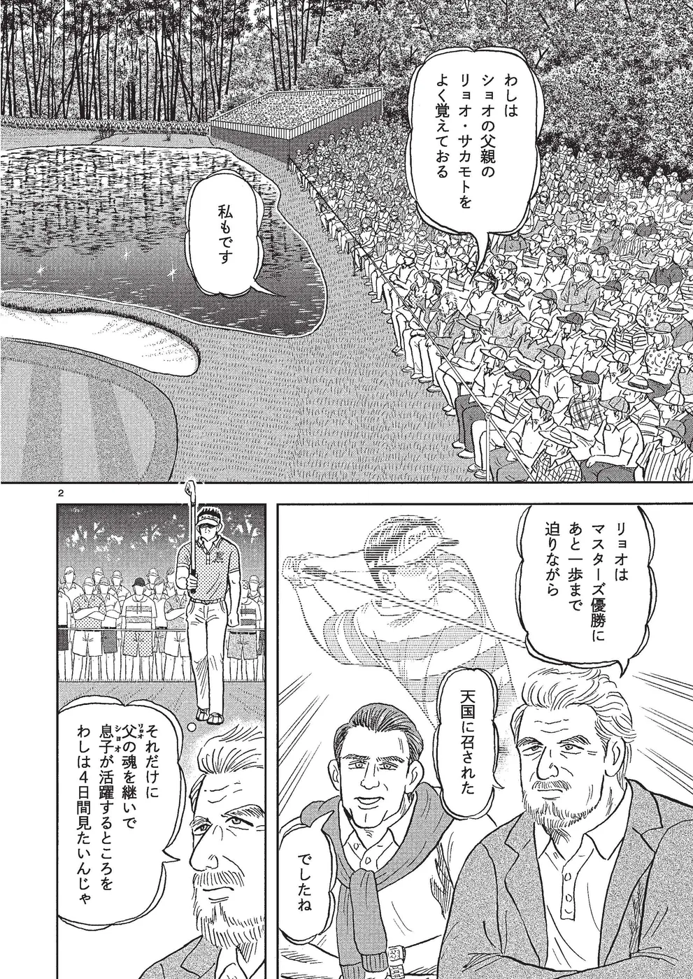 坂本翔は初メジャー全英オープンで5位に入り、ついで全米プロで2位に入ったことで翌年のマスターズ出場権を得た。オフにトレーニングを重ね、春先にアメリカを転戦して好調を維持、オーガスタへ。初日に5オーバーと出遅れた翔は2日目、自分のゴルフを貫くものの、予選突破は厳しい状況になりつつあるが…