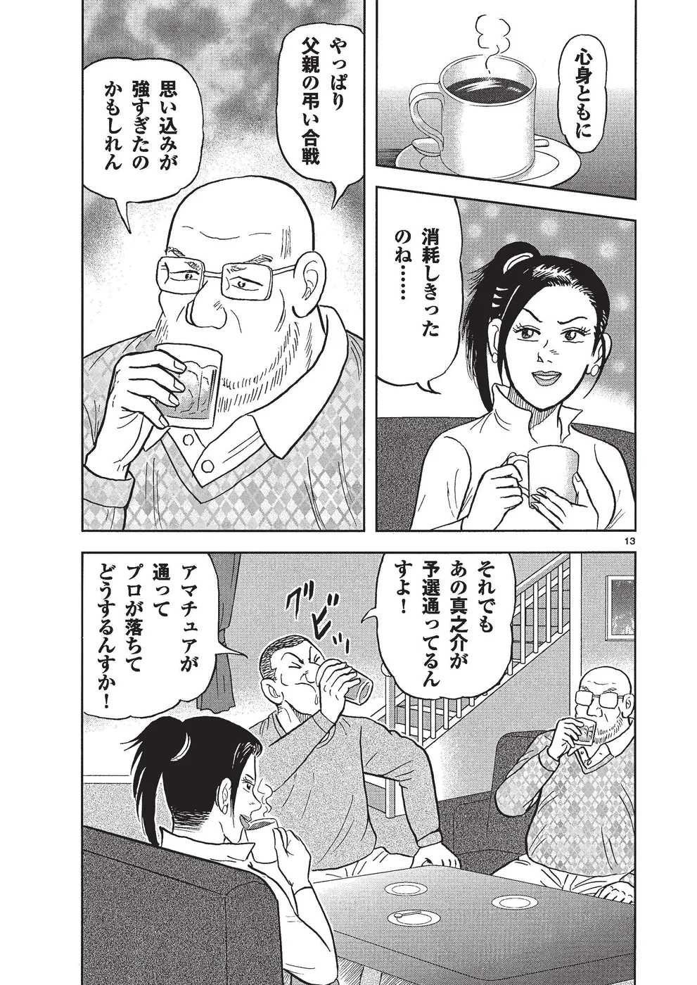 坂本翔は初メジャー全英オープンで5位に入り、ついで全米プロで2位に入ったことで翌年のマスターズ出場権を得た。オフにトレーニングを重ね、春先にアメリカを転戦して好調を維持、オーガスタへ乗り込んだ。初日に5オーバーと出遅れた翔は2日目、自分のゴルフを貫くものの、予選落ちを喫してしまう。