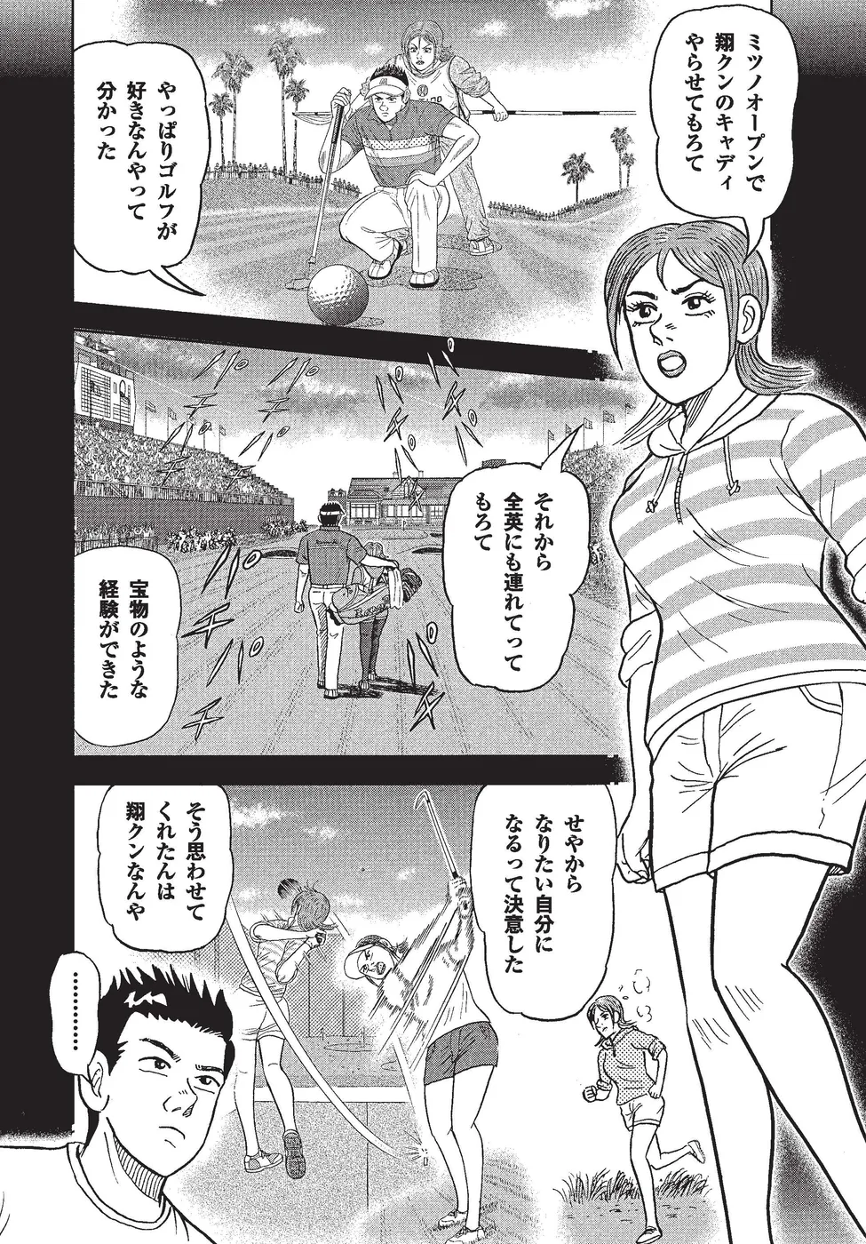 坂本翔は初メジャー全英オープンで5位に入り、ついで全米プロで2位に入ったことで翌年のマスターズ出場権を得た。オフにトレーニングを重ね、春先にアメリカを転戦して好調を維持、オーガスタへ乗り込んだが、結果は予選落ち。まったく通用しなかった自分のゴルフに落ち込み、帰国した翔だが……