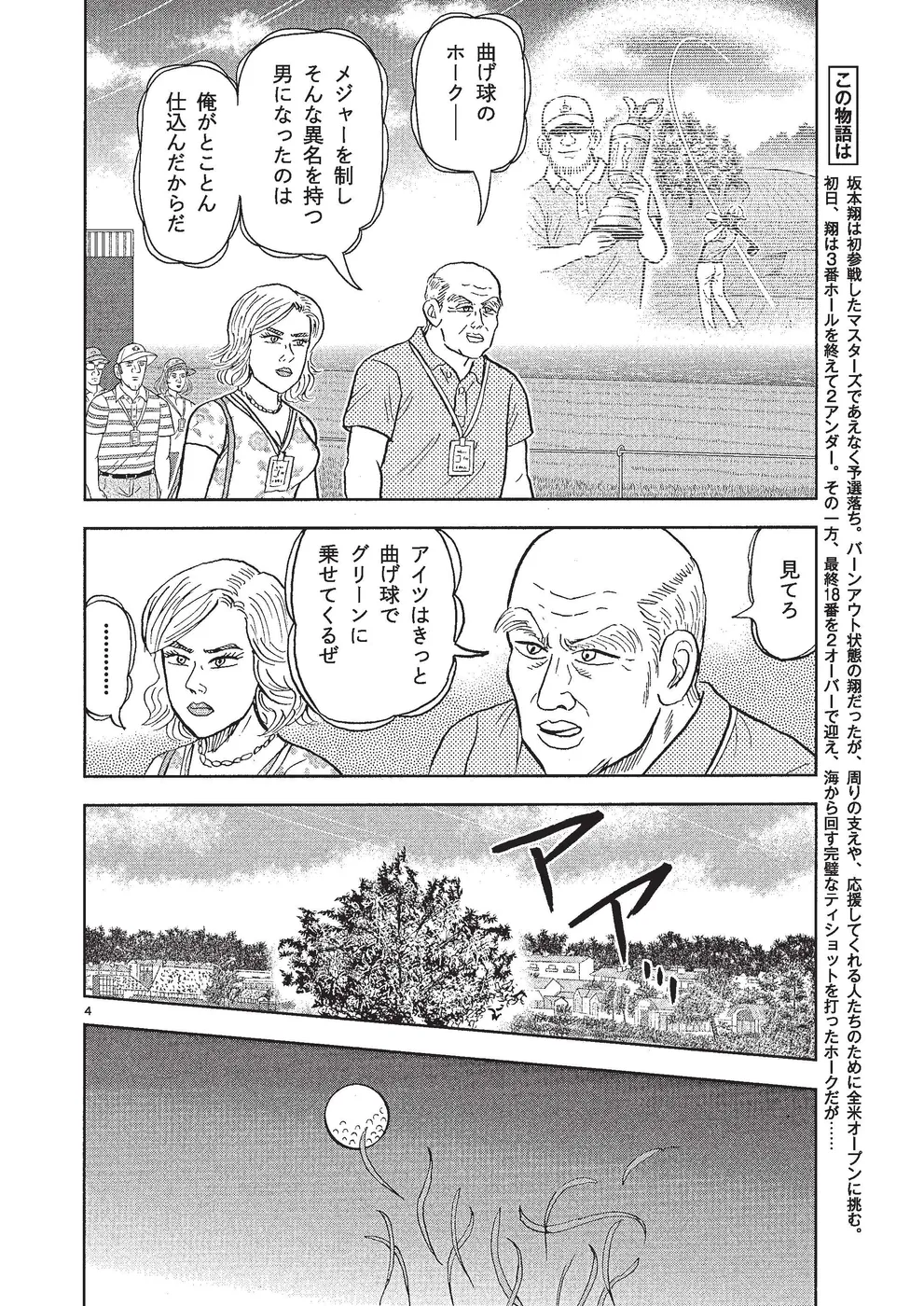 坂本翔は初参戦したマスターズであえなく予選落ち。バーンアウト状態の翔だったが、周りの支えや、応援してくれる人たちのためにペブルビーチでの全米オープンに挑む。初日、翔は3番ホールを終えて2アンダー。その一方、最終18番を2オーバーで迎え、海から回す完璧なティショットを打ったホークだが……