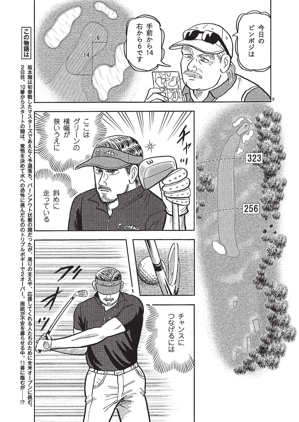 坂本翔は初参戦したマスターズであえなく予選落ち。バーンアウト状態の翔だったが、周りの支えや、応援してくれる人たちのためにペブルビーチでの全米オープンに挑む。2日目、10番からスタートの翔は、覚悟を決めて水への恐怖に挑んだもののトリプルボギーで2オーバー。周囲が不安を募らせる中、11番に挑むが……。