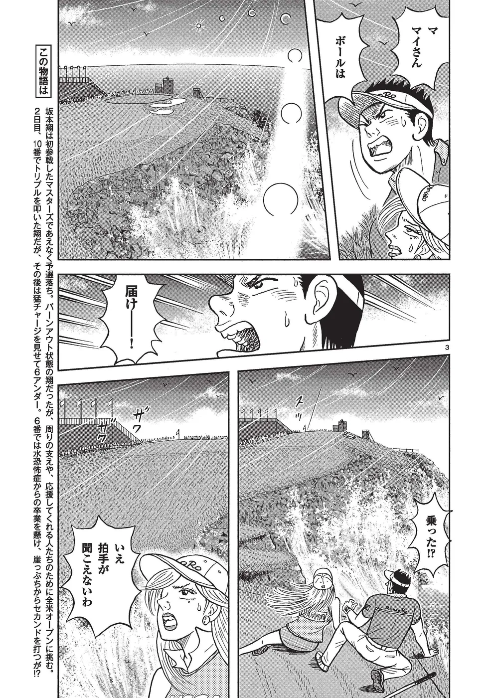 坂本翔は初参戦したマスターズであえなく予選落ち。バーンアウト状態の翔だったが、周りの支えや、応援してくれる人たちのためにペブルビーチでの全米オープンに挑む。2日目、10番でトリプルを叩いた翔だが、その後は猛チャージを見せて6アンダー。6番では水恐怖症からの卒業を懸け、崖っぷちからセカンドを打つが!?