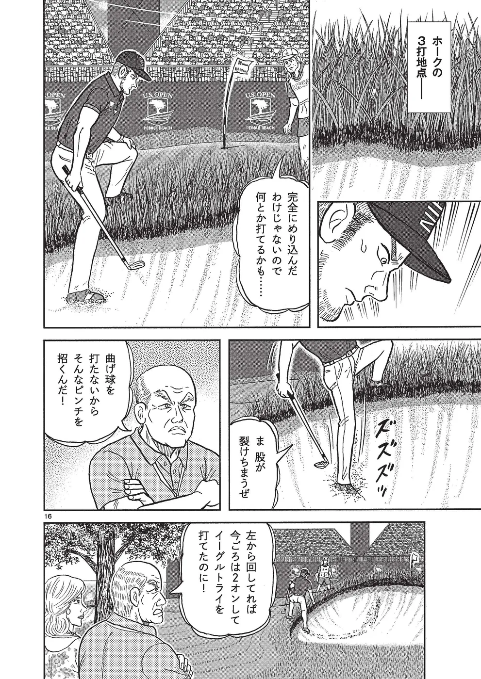 坂本翔は初参戦したマスターズであえなく予選落ち。バーンアウト状態の翔だったが、周りの支えや、応援してくれる人たちのためにペブルビーチでの全米オープンに挑む。2日目、ショートホールの7番を6アンダーで迎えた翔。潮風が吹き荒れる中、クラブ選択が難しい1打目を、意を決した翔はスプーンでトライするが!?