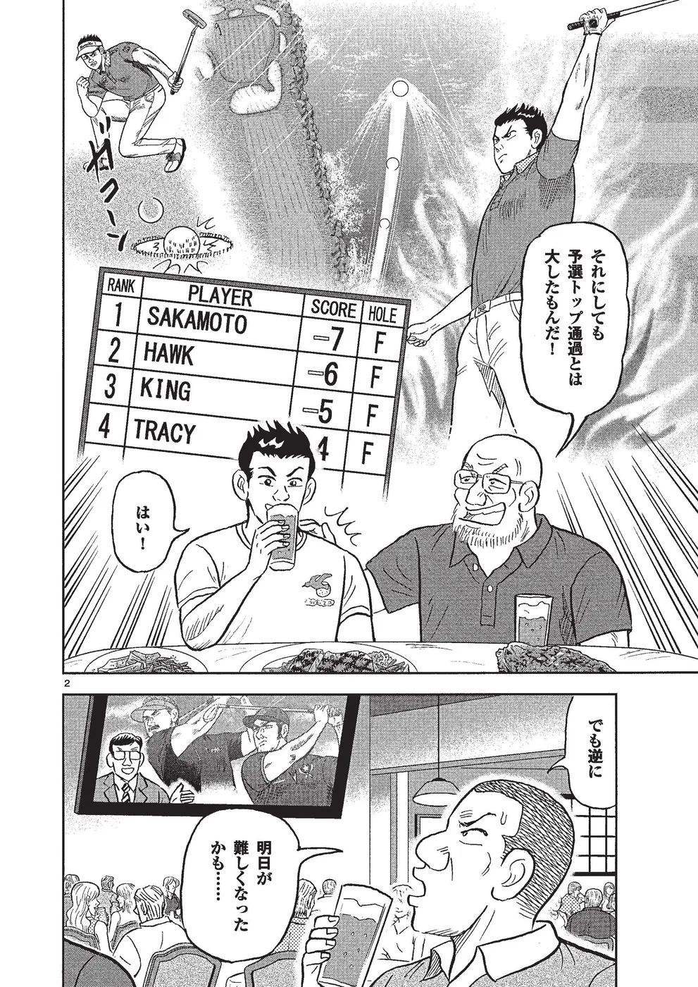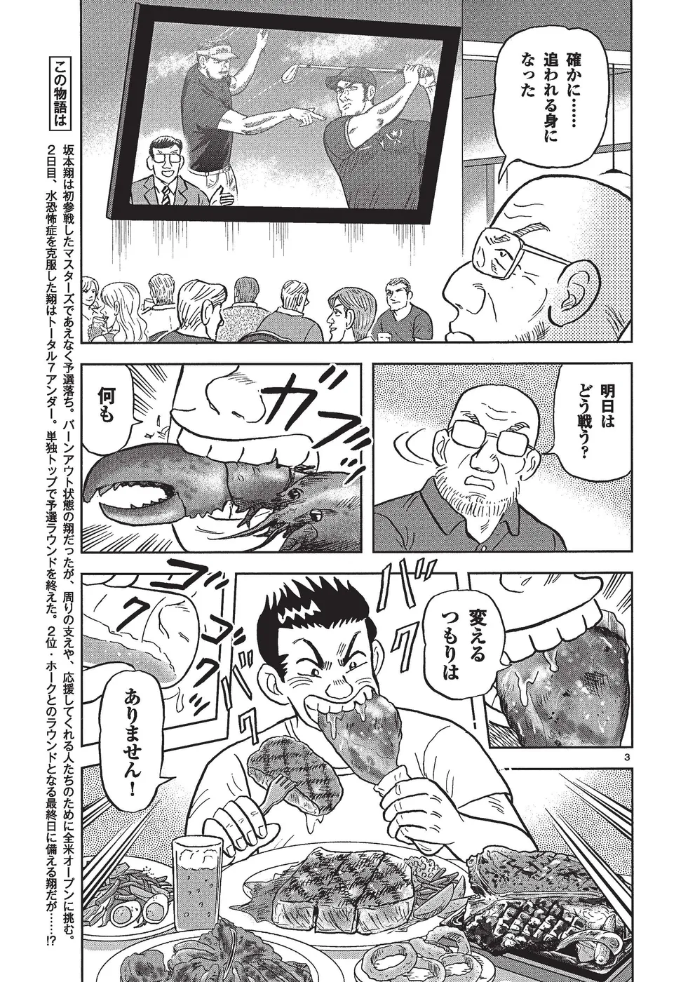 坂本翔は初参戦したマスターズであえなく予選落ち。バーンアウト状態の翔だったが、周りの支えや、応援してくれる人たちのためにペブルビーチでの全米オープンに挑む。2日目、水恐怖症を克服した翔はトータル7アンダー。単独トップで予選ラウンドを終えた。2位・ホークとのラウンドとなる最終日に備える翔だが!?