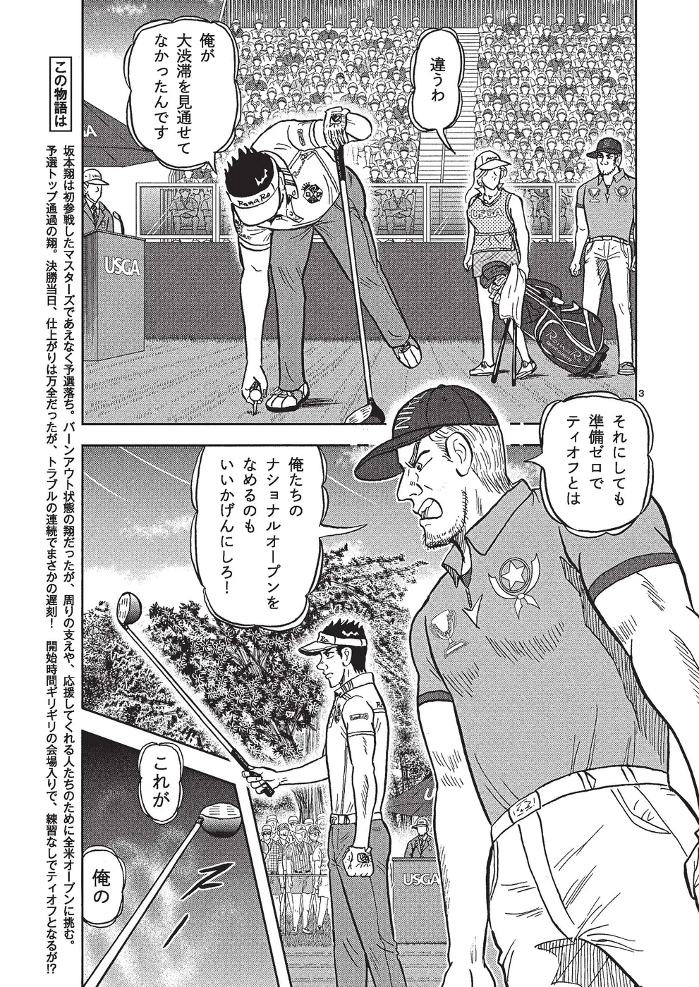 坂本翔は初参戦したマスターズであえなく予選落ち。バーンアウト状態の翔だったが、周りの支えや、応援してくれる人たちのためにペブルビーチでの全米オープンに挑む。予選トップ通過の翔。決勝当日、仕上がりは万全だったが、トラブルの連続でまさかの遅刻! 開始時間ギリギリの会場入りで、練習なしでティオフとなるが!?