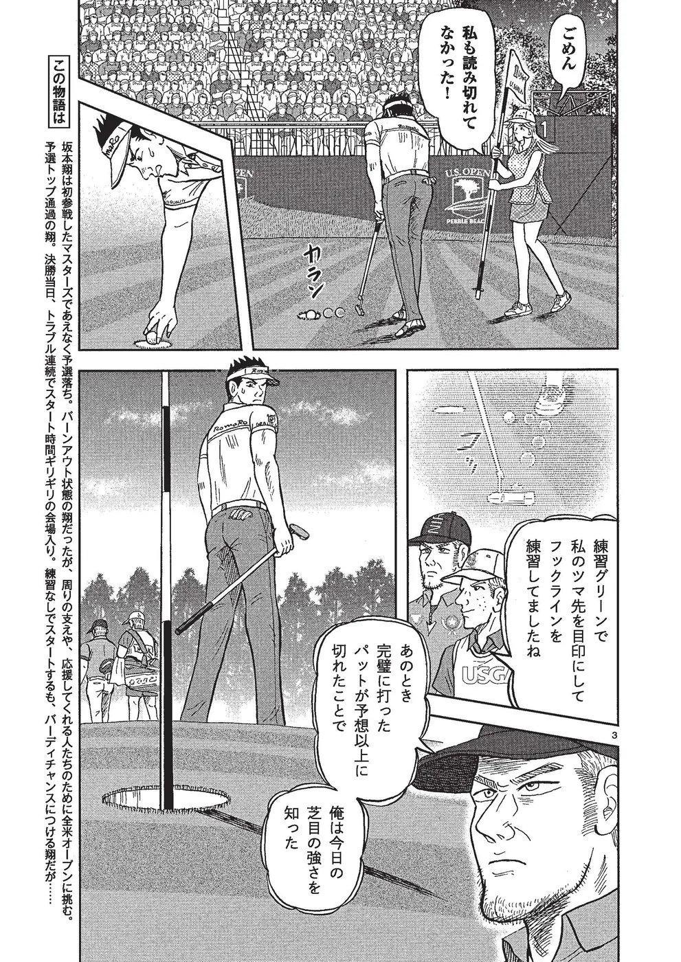 坂本翔は初参戦したマスターズであえなく予選落ち。バーンアウト状態の翔だったが、周りの支えや、応援してくれる人たちのためにペブルビーチでの全米オープンに挑む。予選トップ通過の翔。決勝当日、トラブル連続でスタート時間ギリギリの会場入り。練習なしでスタートするも、バーディチャンスにつける翔だが…