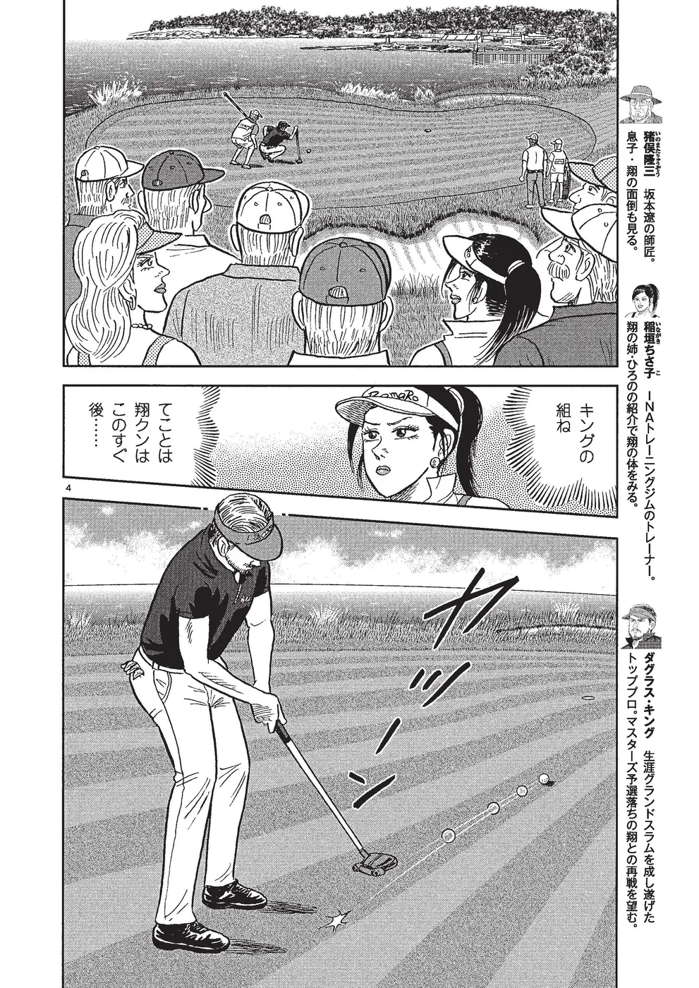 坂本翔は初参戦したマスターズであえなく予選落ち。バーンアウト状態の翔だったが、周りの支えや、応援してくれる人たちのためにペブルビーチでの全米オープンに挑む。予選はトップ通過を果たした翔だが、3日目序盤、準備不足でスコアを落とす。一方、順番万端のホークはストレートボールで絶好調、スコアを伸ばしトップに立つが……