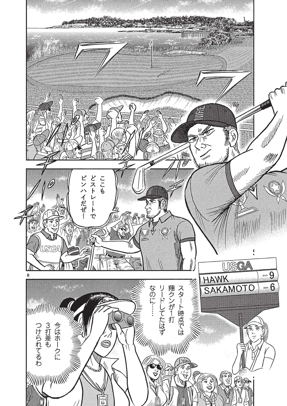 坂本翔は初参戦したマスターズであえなく予選落ち。バーンアウト状態の翔だったが、周りの支えや、応援してくれる人たちのためにペブルビーチでの全米オープンに挑む。予選はトップ通過を果たした翔だが、3日目序盤、準備不足でスコアを落とす。一方、順番万端のホークはストレートボールで絶好調、スコアを伸ばしトップに立つが……