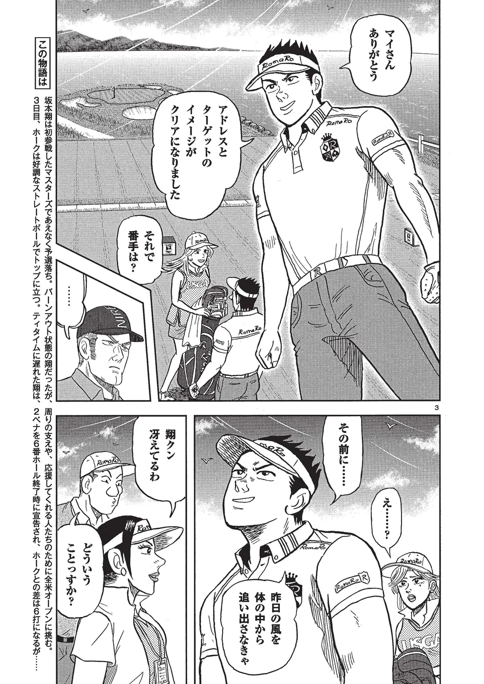坂本翔は初参戦したマスターズであえなく予選落ち。バーンアウト状態の翔だったが、周りの支えや、応援してくれる人たちのためにペブルビーチでの全米オープンに挑む。3日目、ホークは好調なストレートボールでトップに立つ。ティタイムに遅れた翔は、2ペナを6番ホール終了時に宣告され、ホークとの差は6打になるが……