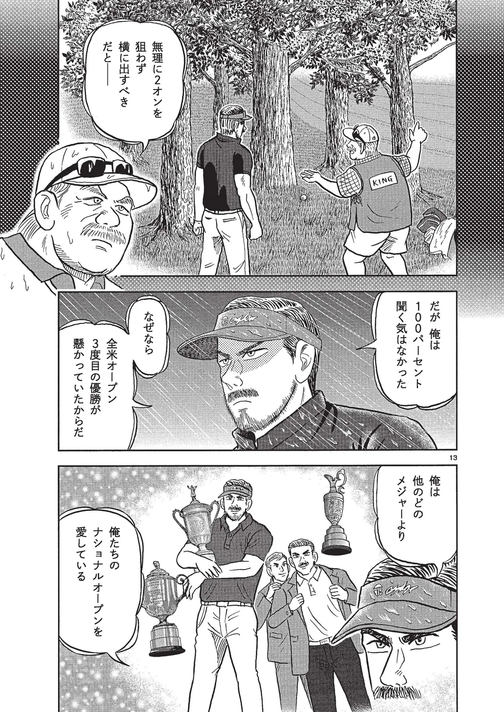 坂本翔は初参戦したマスターズであえなく予選落ち。バーンアウト状態の翔だったが、周りの支えや、応援してくれる人たちのためにペブルビーチでの全米オープンに挑む。3日目、遅刻した翔は2ペナを課せられ出遅れるが、荒れ始めた天候を味方につけ、ホークを猛追。ムービングデーに抜け出すのは翔かホークか…それともキングか!?