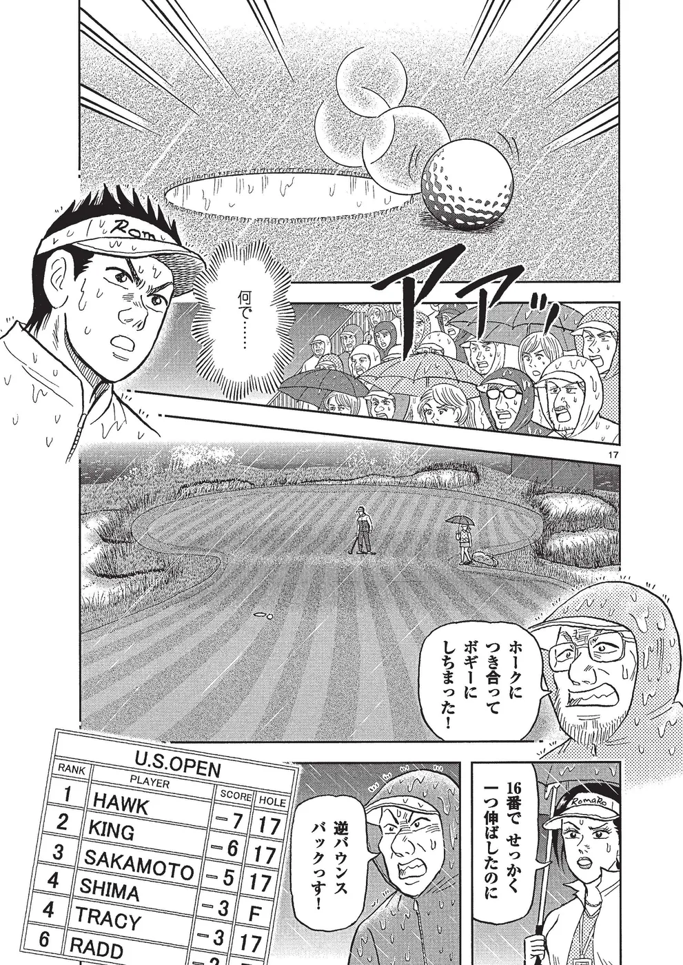 坂本翔は初参戦したマスターズであえなく予選落ち。バーンアウト状態の翔だったが、周りの支えや、応援してくれる人たちのためにペブルビーチでの全米オープンに挑む。3日目、遅刻した翔は2ペナを課せられ出遅れるが、荒れ始めた天候を味方につけ、ホークを猛追。ムービングデーに抜け出すのは翔かホークか…それともキングか!?