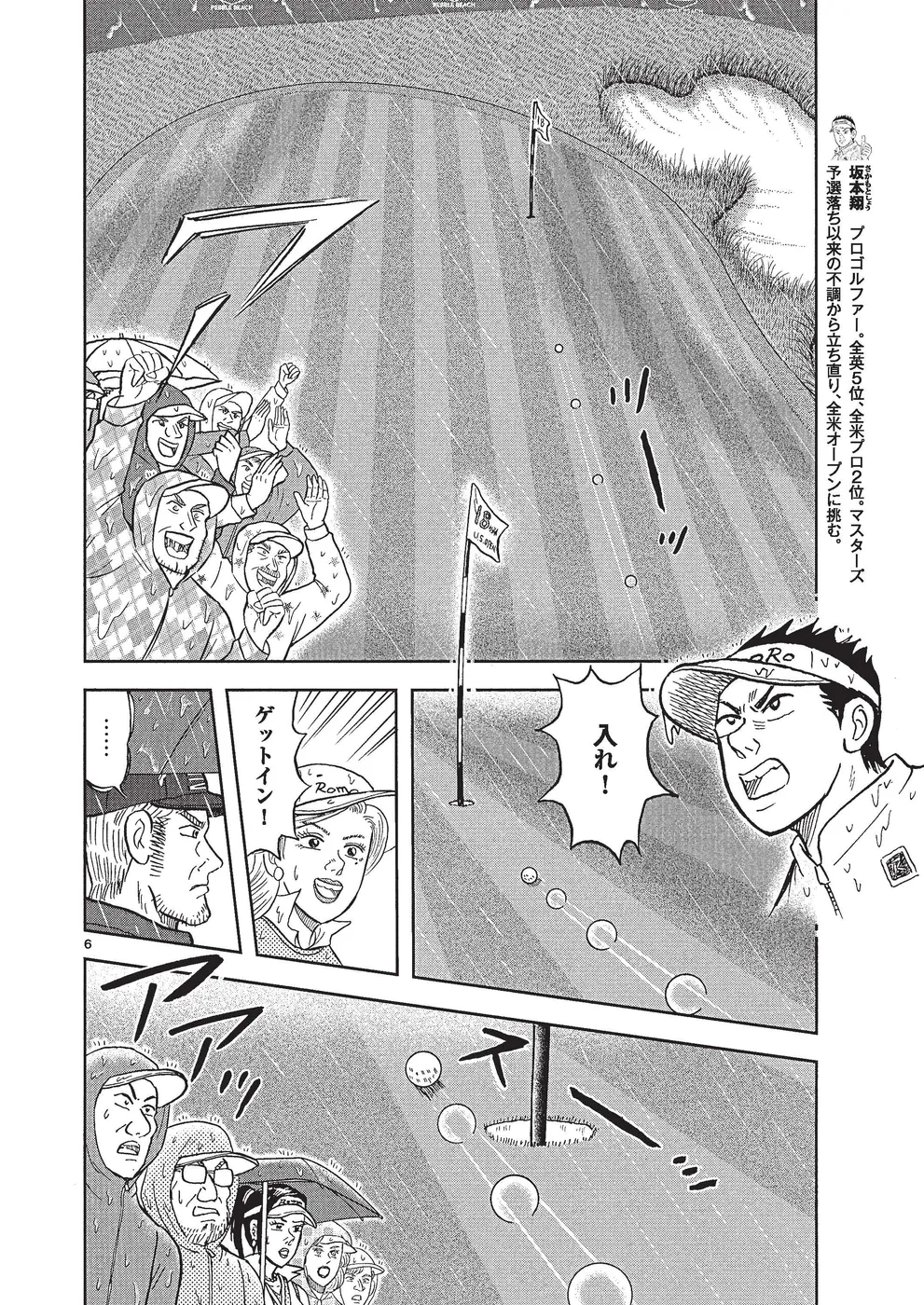 坂本翔は初参戦したマスターズであえなく予選落ち。バーンアウト状態の翔だったが、周りの支えや、応援してくれる人たちのためにペブルビーチでの全米オープンに挑む。3日目、遅刻した翔は2ペナを課せられ出遅れるが、荒れ始めた天候を味方につけ、ホークを猛追。17番を終えて2打差の3位につける。最終ホールでバーディフィニッシュなるか?