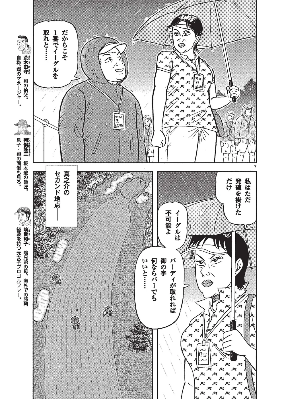 坂本翔は初参戦したマスターズであえなく予選落ち。バーンアウト状態の翔だったが、周りの支えや、応援してくれる人たちのためにペブルビーチでの全米オープンに挑む。3日目、遅刻した翔は2ペナを課せられ出遅れるが、トップのホークとは3打差でホールアウト。最終日はスリーサムとなり、翔はキングとホークと回ることに。迎えた最終日、アマチュア優勝を目指す真之介がティオフする!