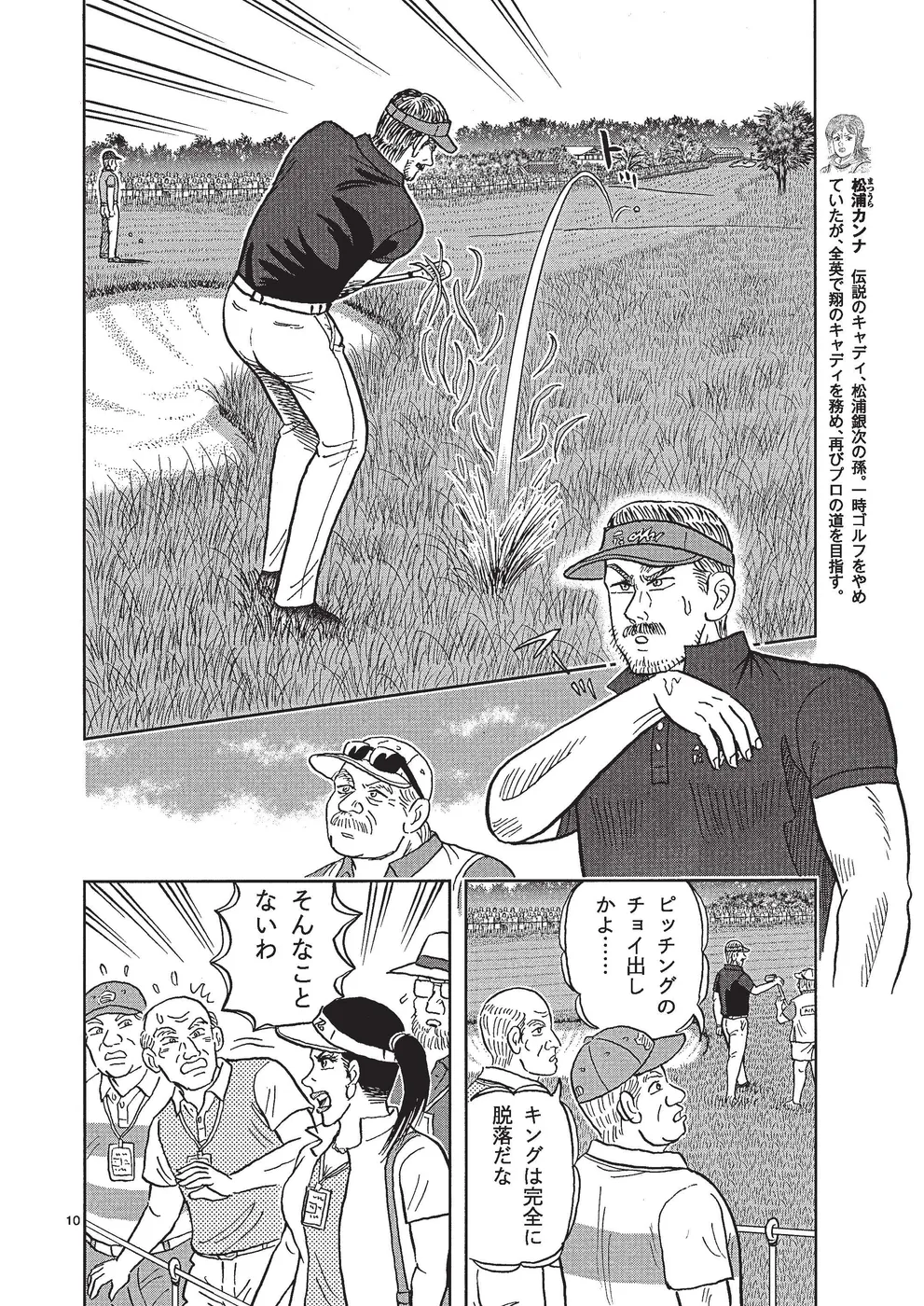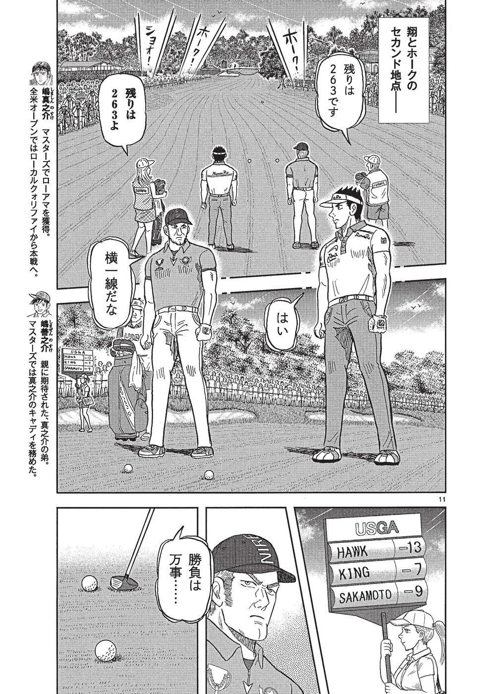 坂本翔は初参戦したマスターズであえなく予選落ち。バーンアウト状態の翔だったが、周りの支えや、応援してくれる人たちのためにペブルビーチでの全米オープンに挑む。3日目を終えて翔はトップのホークとは3打差。最終日はスリーサムとなり、翔はキングとホークと回ることに。迎えた最終日、アマチュアの真之介も加えたバックナインの激闘が続く!