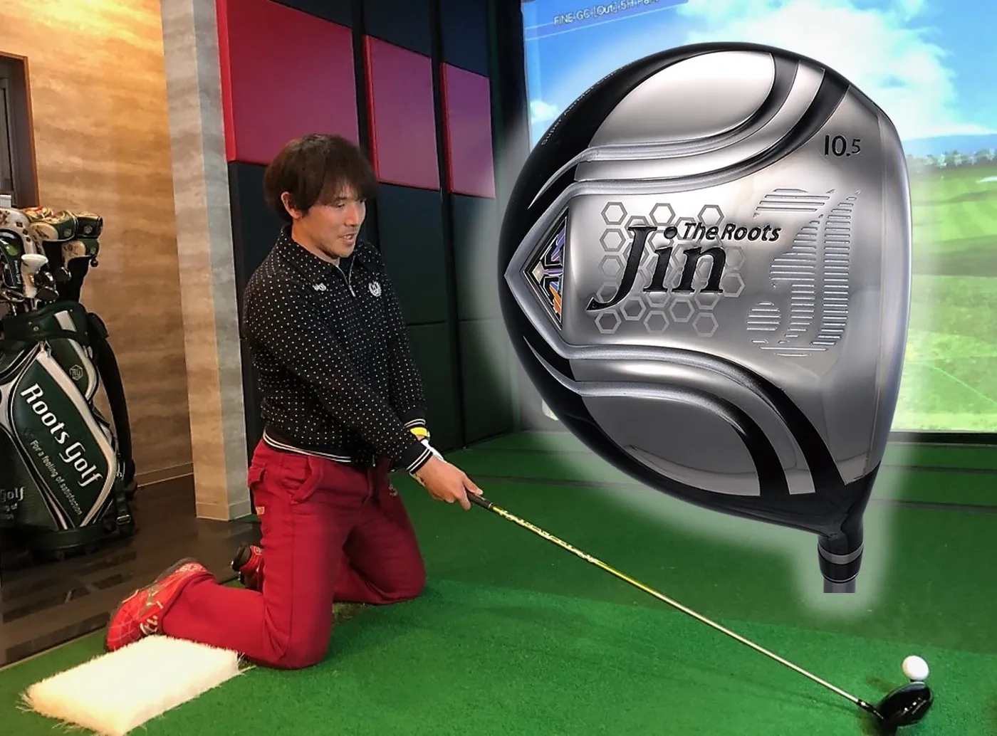 ヒザ立ちショットのギネス記録を狙う佐伯忍プロ。使用するのは『The Roots Jin DRIVER』!
