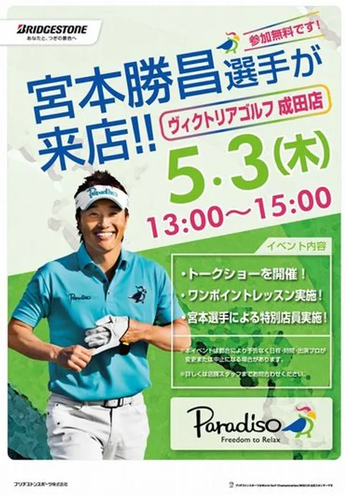 宮本勝昌が5/3にヴィクトリアゴルフ成田店にてイベントを開催!