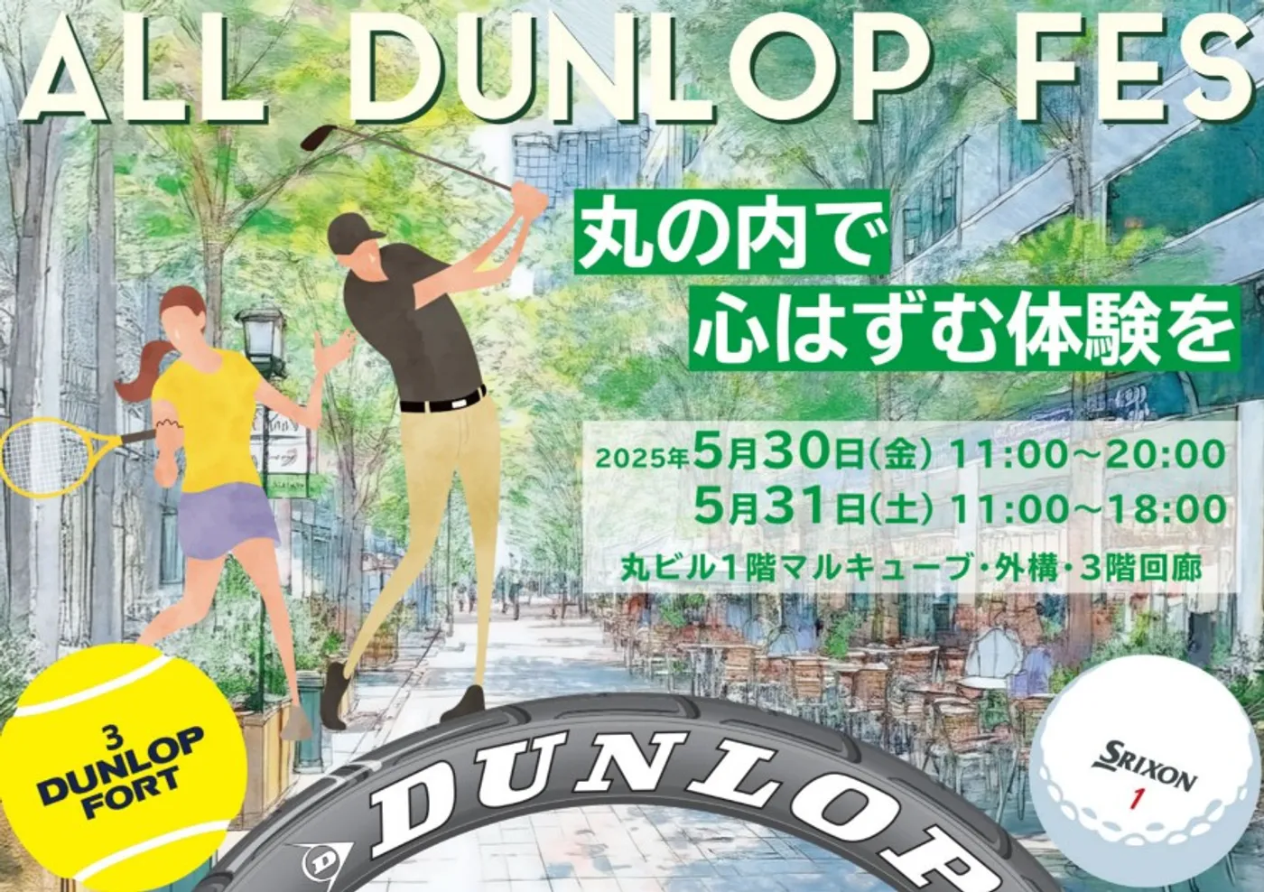 今年は丸ビル!ダンロップが5月30日、31日に「ゴルフ・テニス・タイヤ」の体験型フェス開催!